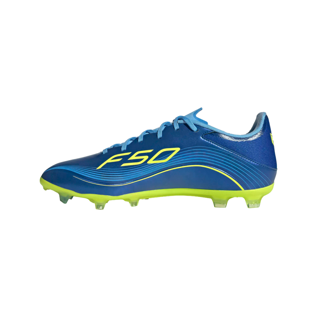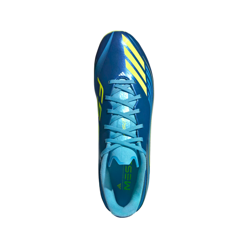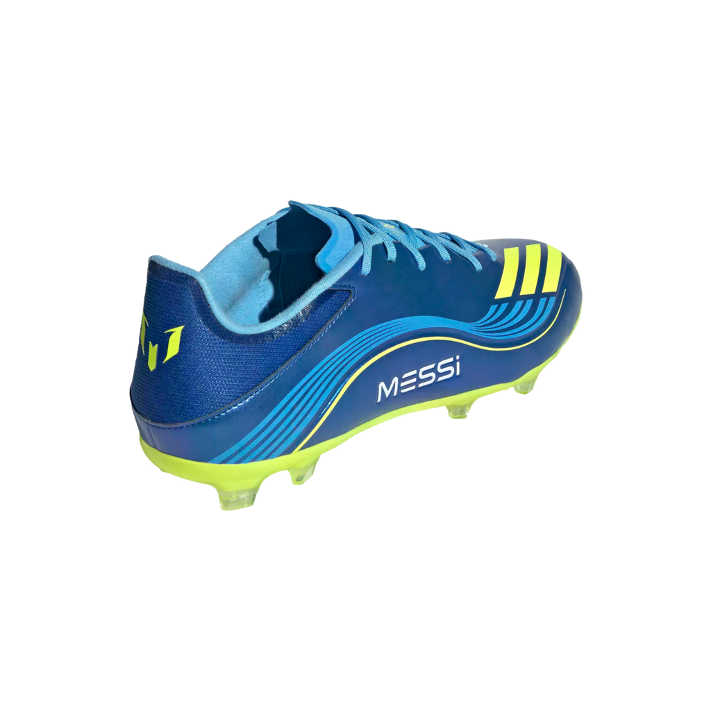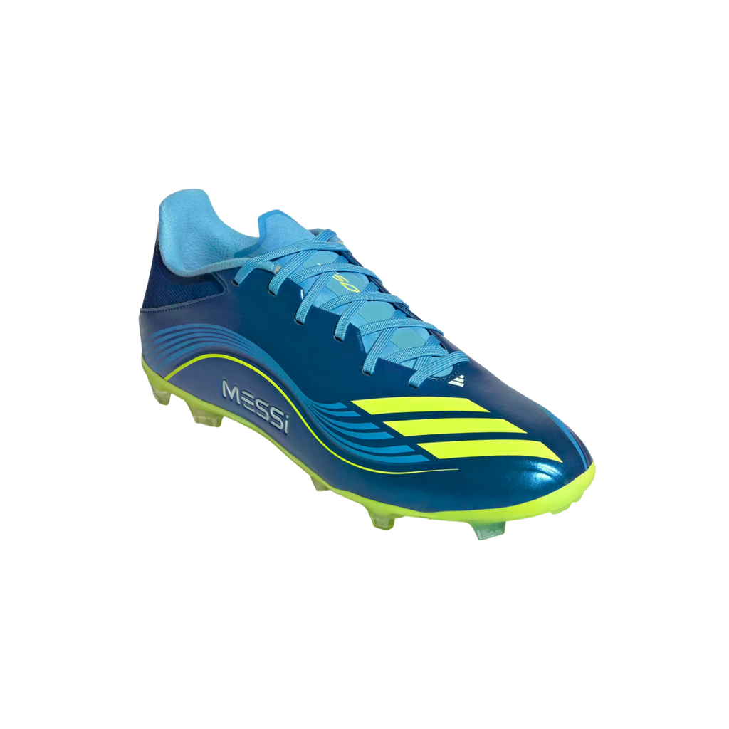 Lightweight F50 cleats for showing non-stop Messi skills on multiple surfaces.
