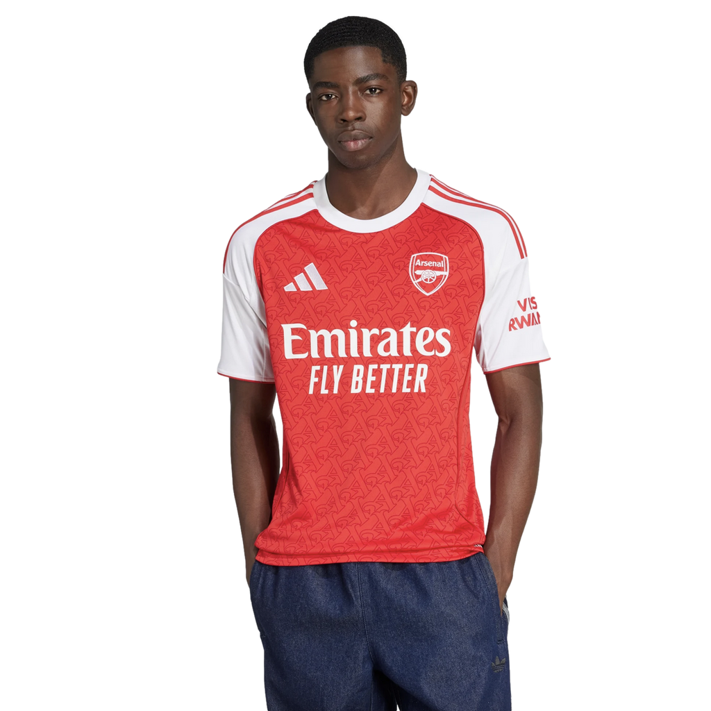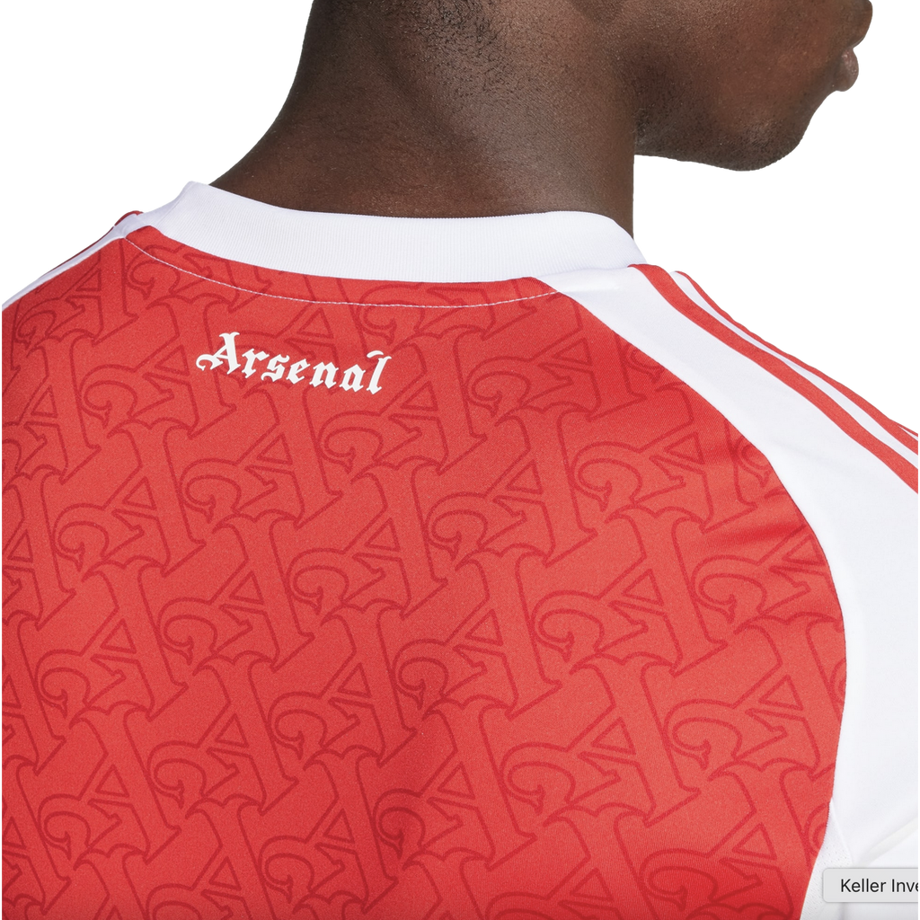 Red body. White sleeves. So far, so timeless. Look closely at this Arsenal home jersey from adidas, though, and you'll see club DNA flows beyond the colors. Repeated across the front and back, Gothic-style A's from a vintage team badge add a finishing touch that all fans will appreciate. Created for comfortable support, this soccer shirt comes with soft fabric and moisture-managing AEROREADY.