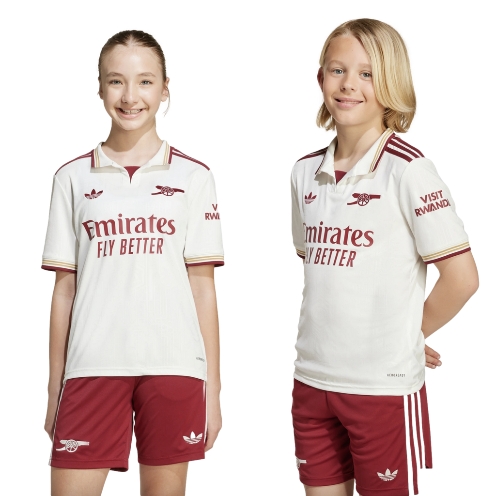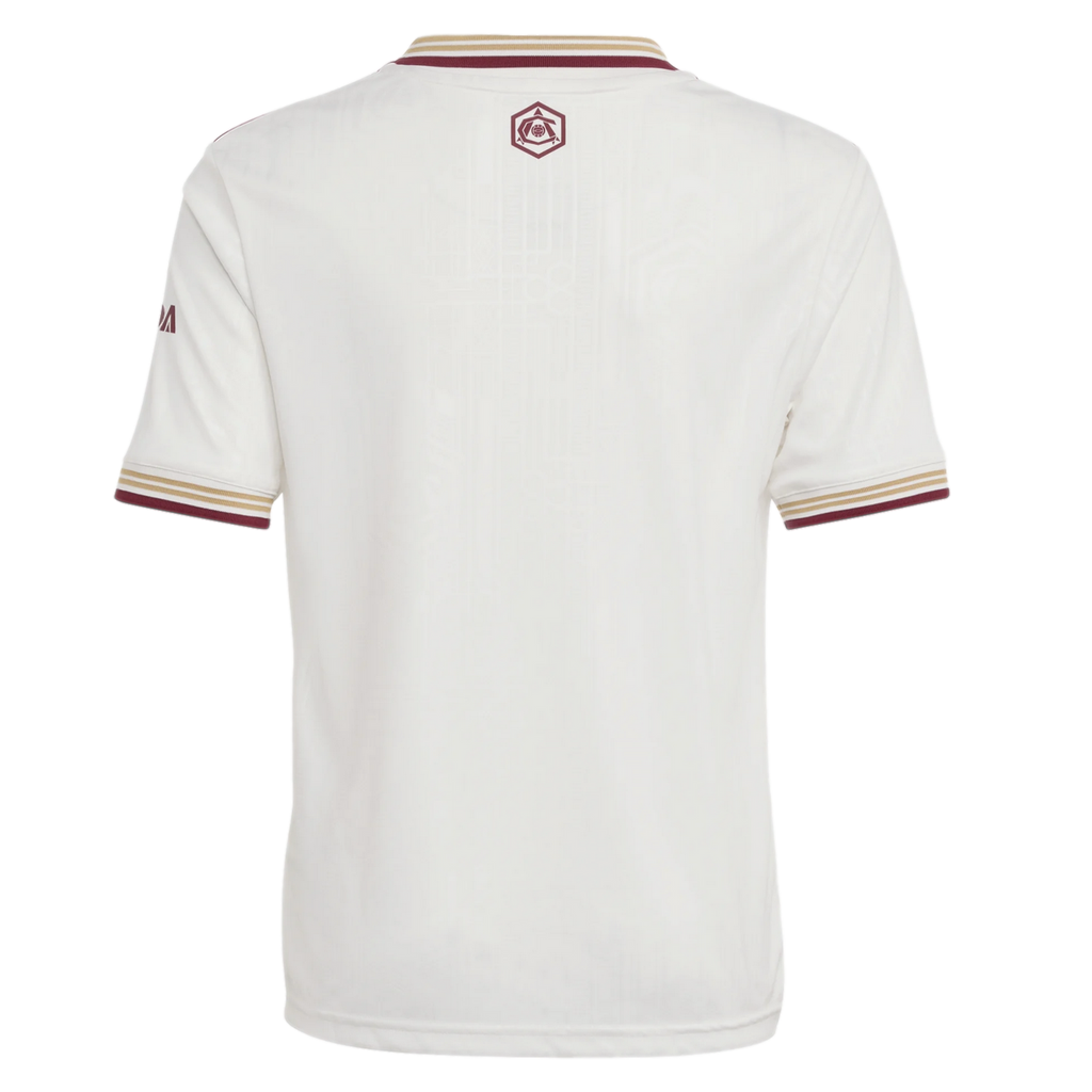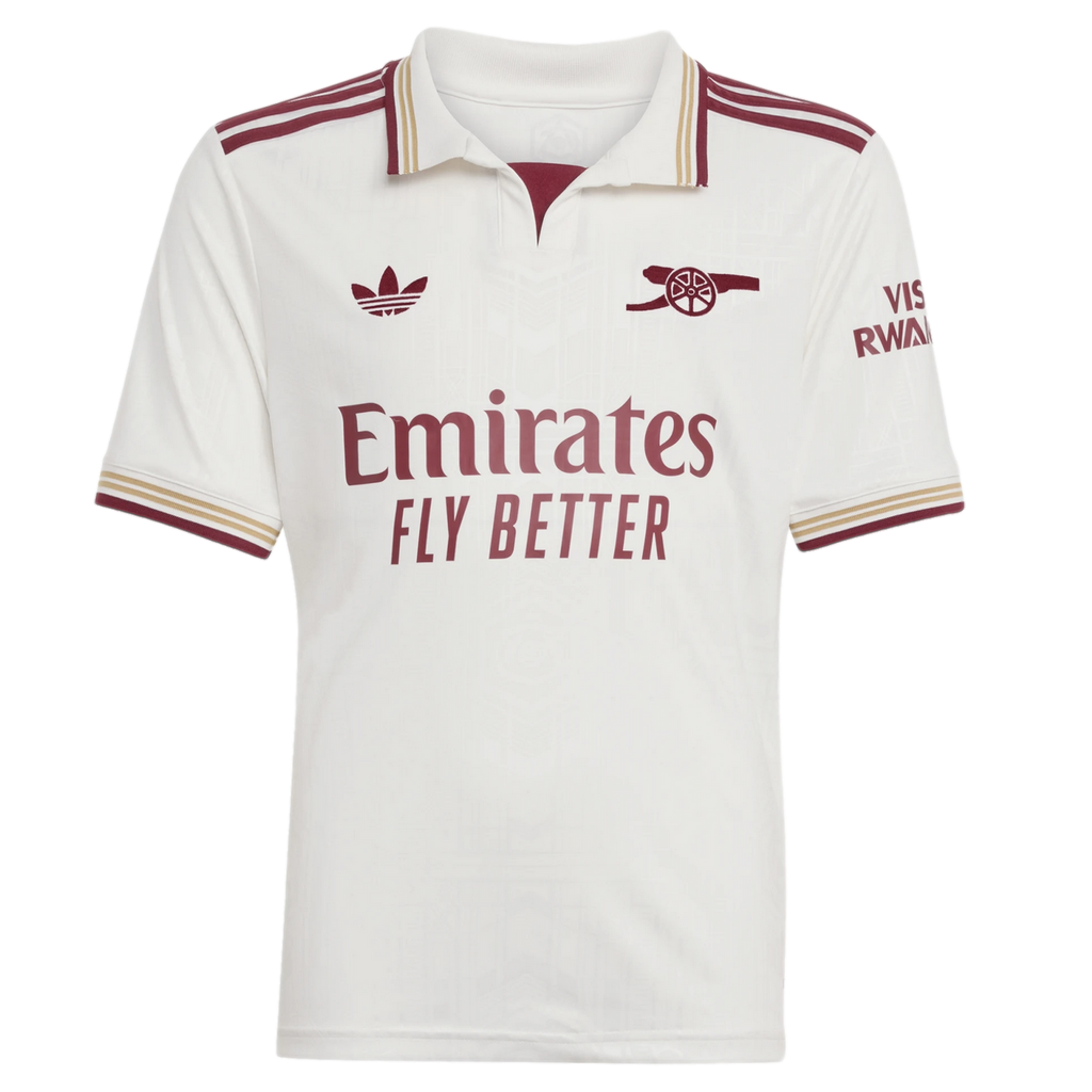 Twenty years on from Arsenal's final season at Highbury, this juniors' adidas football jersey nods to the Art Deco elegance of the stadium's East Stand. From its off-white colouring to its intricate all-over graphic to that vintage badge on the back neck, it's built to be treasured by fans of all ages. Moisture-managing AEROREADY and soft fabric ensure you stay comfortable while you pay tribute.