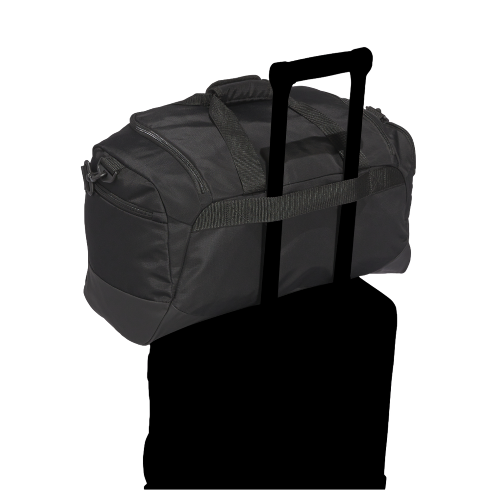 This small duffel bag is built for athletes on the go, whether to practice or a weekend travel tourney. Durably built to resist wear and tear, it's got a water-resistant base and a strap that lets you connect it to a luggage trolley. Multiple zip pockets and a large main compartment hold your gear. Webbing attachments let you clip stuff like keys or a water bottle.