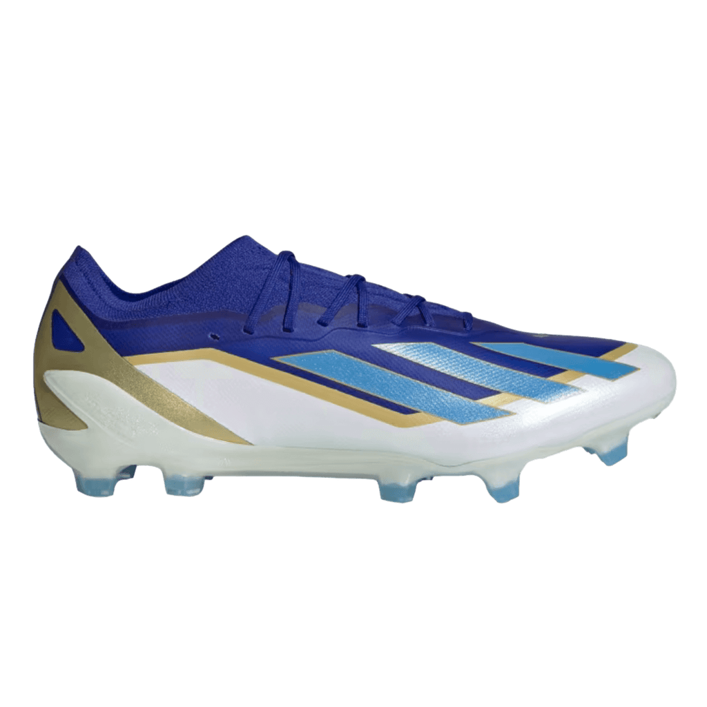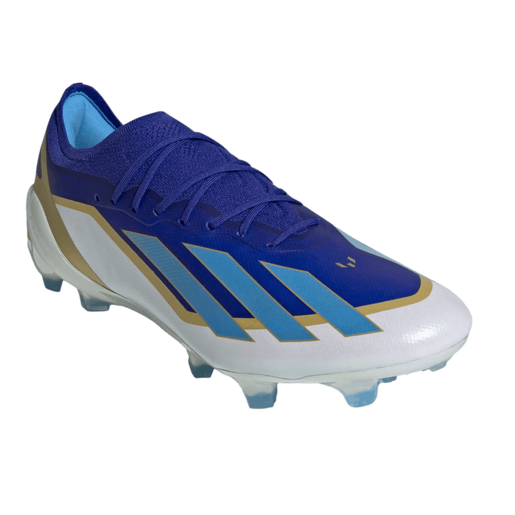 Rinde homenaje a un genio del fútbol con los colores de su equipo campeón del mundo. Luciendo elegantes con una parte superior Aeropacity Speedskin semitranslúcida vestida con el azul y blanco de Argentina, estas botas X Crazyfast Messi incluyen refuerzos solo donde son necesarios. Un collar adidas PRIMEKNIT te sujeta y los tacos adicionales en el antepié en la suela Speedframe te ayudan a provocar el caos en terreno firme. Este producto contiene al menos un 20 % de materiales reciclados. Al reutilizar materiales que ya han sido creados, ayudamos a reducir el desperdicio y nuestra dependencia de recursos finitos y reducimos la huella de los productos que fabricamos.