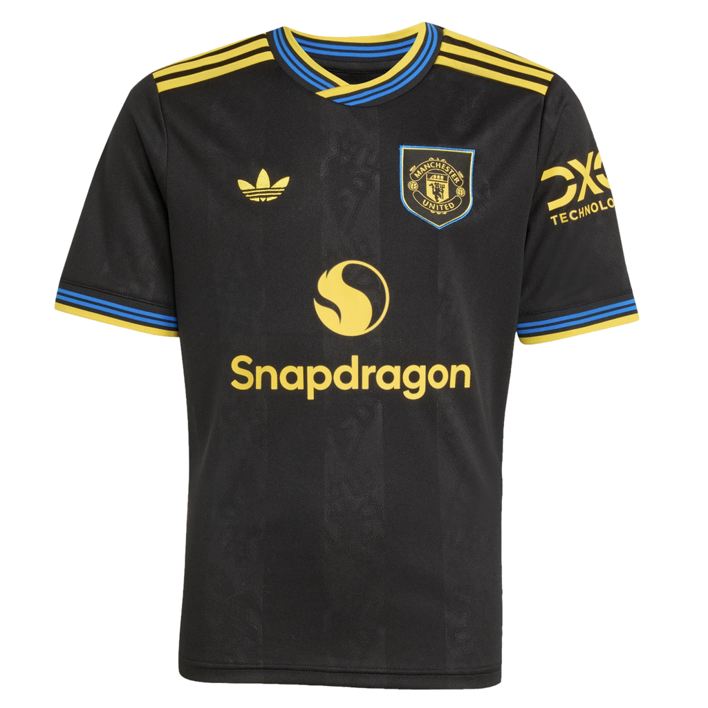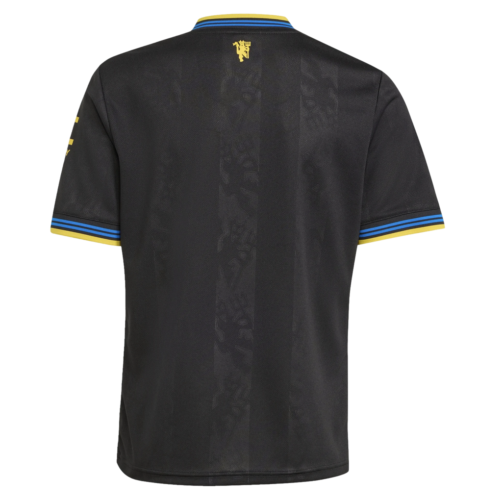 Part of a clean, classic adidas kit that will transport fans to a golden era. Finished in black, this juniors' Manchester United third jersey conjures some of the club's most iconic players and memorable away performances. A yellow Trefoil and club badge stand out on the chest while more subtle, devilish details are woven into the fabric. Moisture-managing AEROREADY keeps young fans comfortable while their team create new memories.