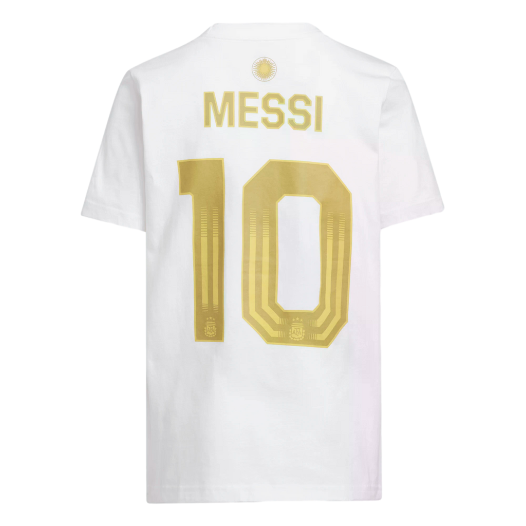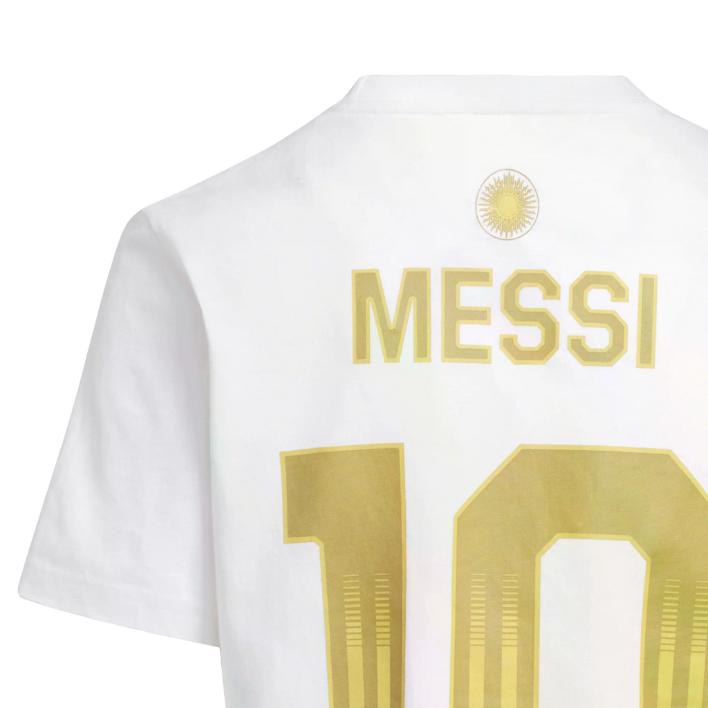 Let your little one channel their inner soccer legend with the Messi Name & Number Graphic Tee Junior. This tee is crafted for young fans who dream big and play hard, just like their idol.