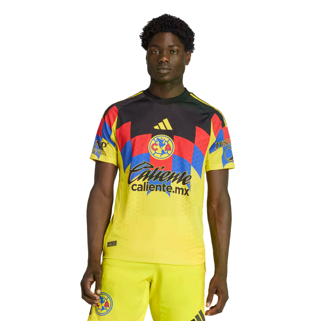 A legend takes flight. This home authentic jersey celebrates Club América teaming back up with adidas. A modern take on one of the duo's most memorable collaborations, it features eagle feather-inspired graphics on the chest and a prominent, centered badge. Created for sparkling soccer, this version of the shirt is the one you'll see players wearing on the field.