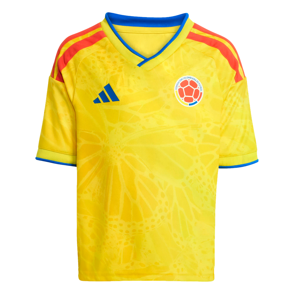 The Colombia 26 Home set brings expressive style to young fans with a design rooted in national identity. Graphic elements reflect movement, rhythm and Colombian energy—alive with color and meaning.