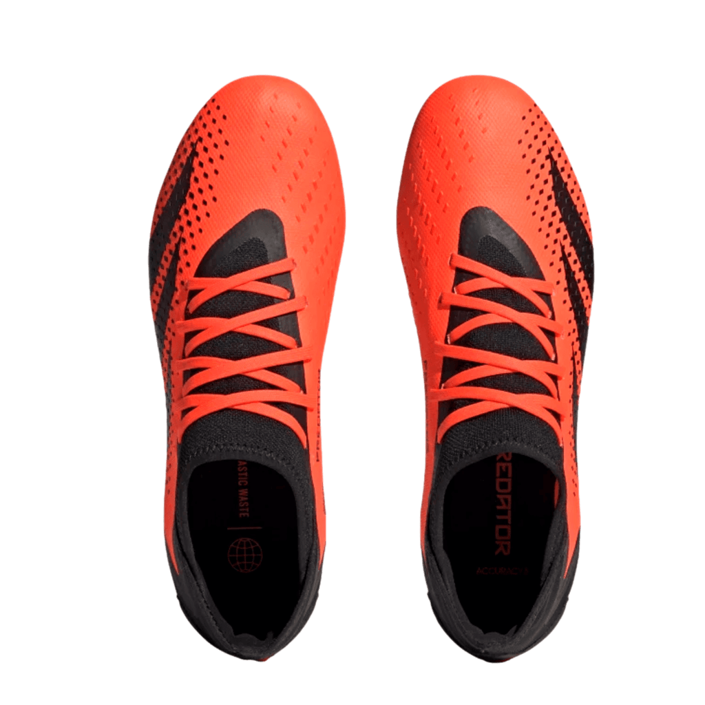 Control + precisión = confianza. Cuando el objetivo esté en tu mira, apunta a la perfección con adidas Predator Accuracy. La parte superior de tela suave y revestida de estos botines de fútbol incluye textura de alta definición en la zona de strike. Una mezcla de elementos grabados y estampados en relieve, está ahí para ayudarte a acertar en cada pase y tiro. Debajo, una suela exterior especializada te mantiene en modo jefe en terreno firme.
