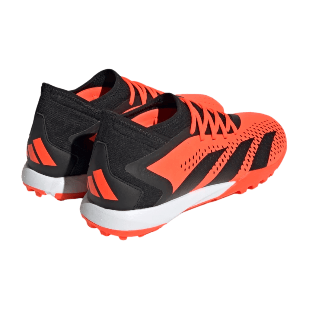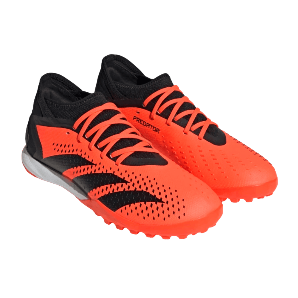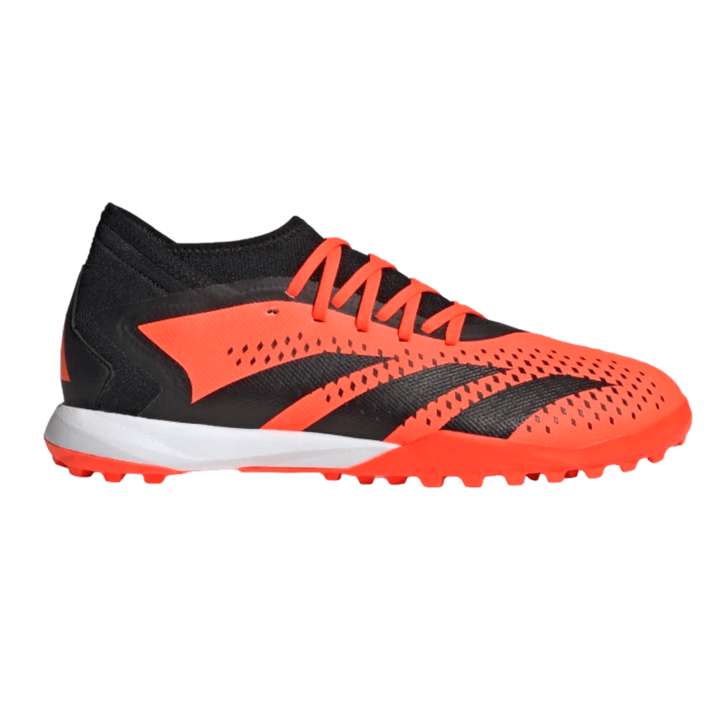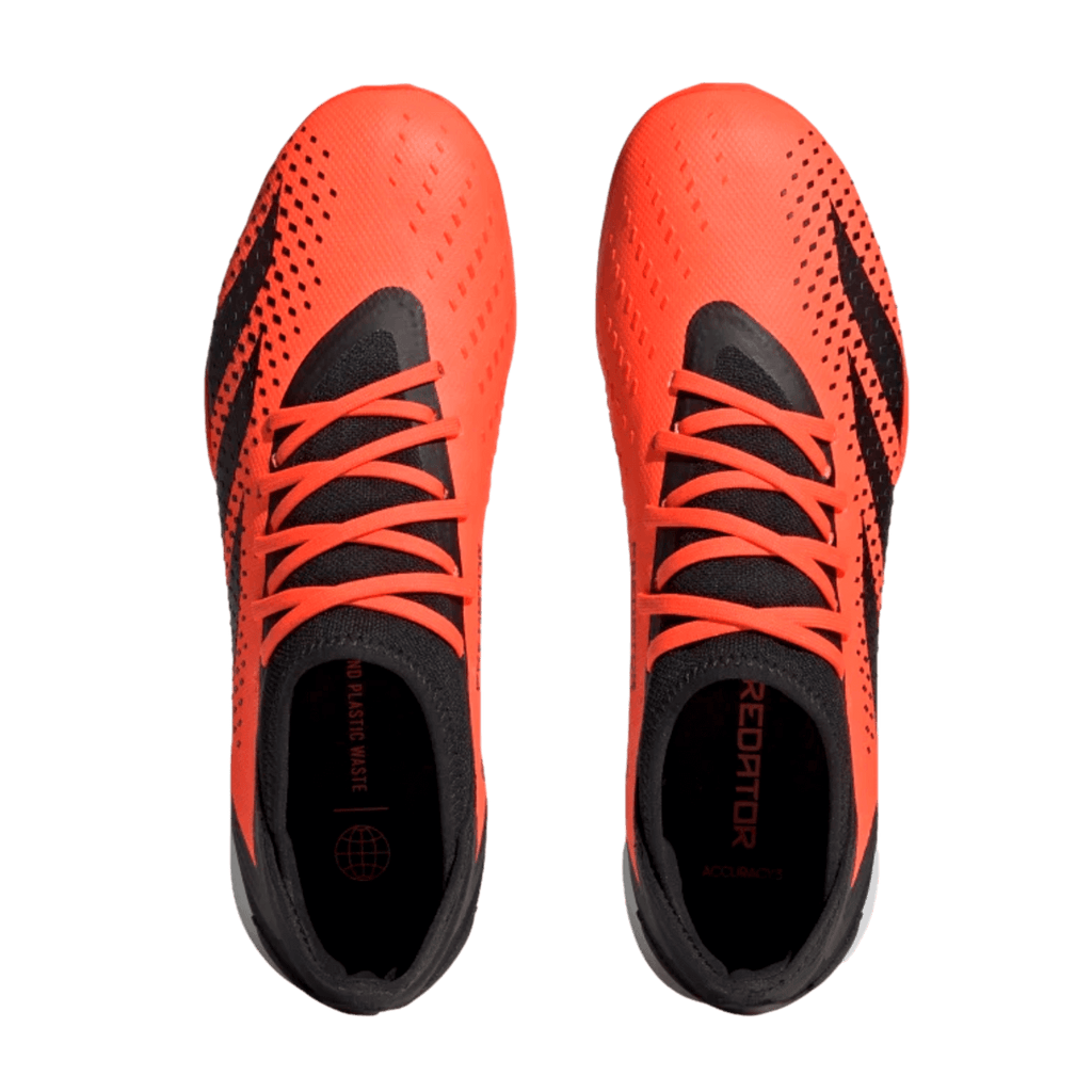 Control + precisión = confianza. Cuando el objetivo esté en tu mira, apunta a la perfección con adidas Predator Accuracy. La parte superior de tela recubierta de estos zapatos de fútbol incluye textura de alta definición en toda su zona de strike. Una mezcla de elementos grabados y estampados en relieve, está ahí para ayudarte a acertar en cada pase y tiro. Debajo, una suela exterior de goma con tacos te mantiene en modo jefe en césped artificial. Fabricada con una serie de materiales reciclados, esta parte superior presenta al menos un 50 % de contenido reciclado. Este producto representa solo una de nuestras soluciones para ayudar a acabar con los residuos plásticos.