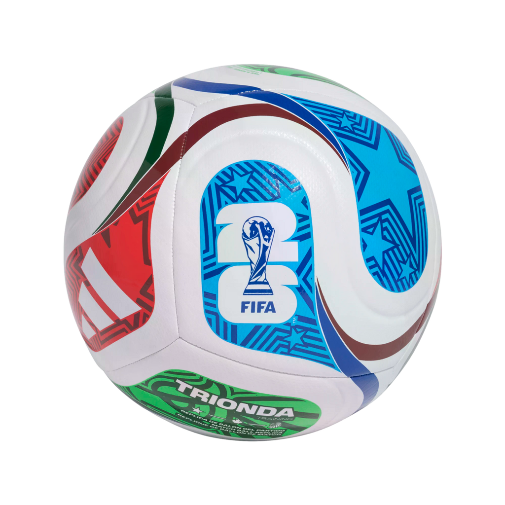 A spectacular sight first seen at sporting venues across the Americas, the iconic "la ola" wave inspires the flowing, six-panel design of this adidas Trionda Training ball. Perfect for polishing your skills, it has a durable, machine-stitched construction. Mimicking the look of FIFA World Cup 26™'s official match ball, debossed details and surface texturing join the symbols and colors of the tournament's three host countries on the cover.