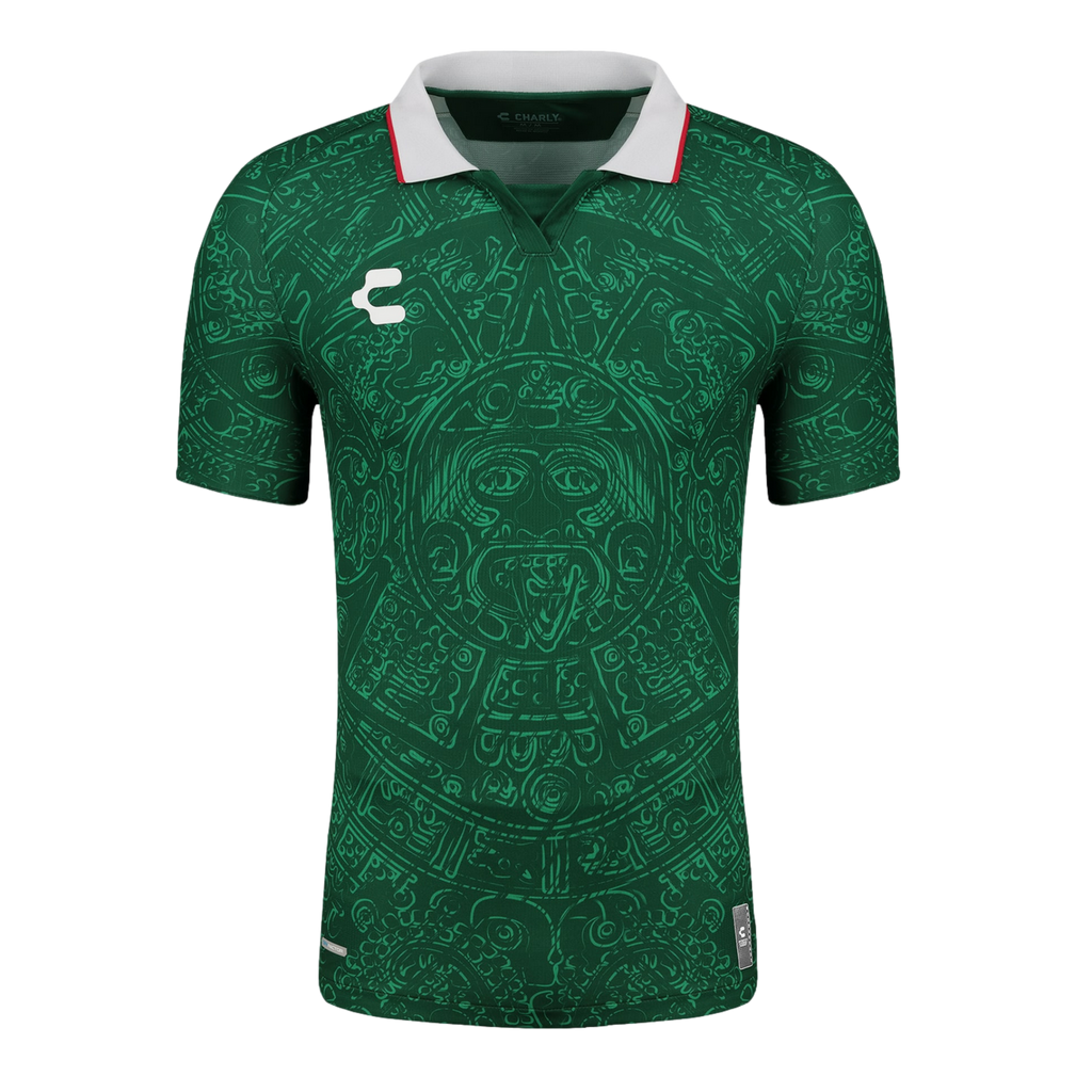 ¡Vibra con la esencia de México y lleva contigo un pedazo de historia con el Jersey Charly México Aztec Heritage Edición Especial! Este jersey edición especial es una obra maestra que une historia y estilo en una sola prenda. Inspirada en la legendaria camiseta de la Selección Mexicana de 1998, que brilló en el Mundial de Francia, esta edición exclusiva es mucho más que un uniforme: es un símbolo de nuestra identidad. Su diseño enriquecido con el monumental Calendario Azteca captura la fuerza y ​​la conexión entre dioses y hombres, recordándonos el ciclo infinito del tiempo y nuestra rica herencia cultural. Con la frase “Hermoso Cariño” inscrita en la parte posterior del jersey, es un guiño a lo que nos hace únicos: el amor por nuestra tierra y nuestra historia. Con su elegante cuello polo y mangas raglán, que se extienden desde el cuello hasta la manga en una sola pieza, brindando mayor ajuste y movilidad. Este suéter es un homenaje al pasado fusionado con una declaración de estilo y orgullo. Es la mezcla perfecta de comodidad y tradición, una pieza que te envuelve en la historia mientras vives el presente. Fabricada en 100% poliéster suave al tacto, junto con su tecnología DRY FACTOR de secado rápido te mantendrá seco por más tiempo, asegurándote una frescura extra antes, durante y después de cada actividad o entrenamiento gracias a sus tejidos especializados en transferencia de humedad. Además, su tecnología NANO GUARD brinda un alto nivel de comodidad permitiendo que tu piel respire y evitando olores inesperados. Adicionalmente, su tecnología UV BLOCK es especial para protegerte de los rayos ultravioleta, brindándote todo el cuidado que tu piel requiere, asegurándote que siempre estés listo para apoyar o mantenerte fresco durante tus partidos. ¡Lleva contigo esta oda a México y demuestra que nuestra pasión no tiene límites, vístete como una leyenda y celebra lo que somos!