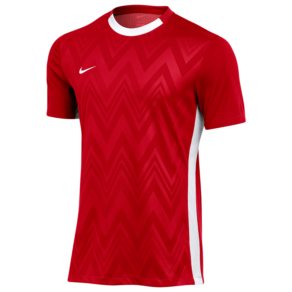 The Nike Dri-FIT Challenge V Jersey is designed to keep your players cool and comfortable through 90 minutes and beyond. Mesh on the back and side panels offer breathability where athletes need it most. Body and sleeves are a Nike Dri-FIT knit fabric that moves sweat away to help keep players dry. This top is made with 100% recycled material. Side panel construction uses a more efficient pattern to help reduce material waste. Slim fit for a tailored look and feel.