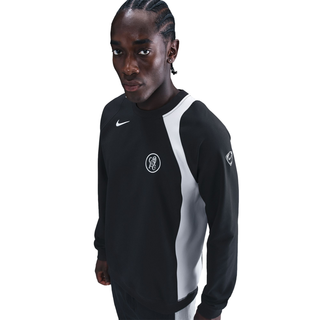 This Chelsea FC top pairs the early-2000s energy of Nike’s iconic soccer kits with functional style. Curving, asymmetrical lines with a water-repellent shell create a look that’s game ready in the stands and the streets.