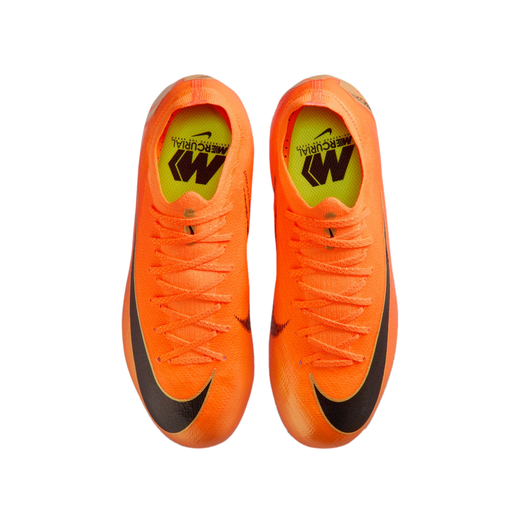Who doesn't love a good throwback? The Vapor 16 Pro "Déjà Vu" blends the orange history of Mercurial with some of the most modern materials and finishes we offer. It’s everything you loved about the old with everything you expect from the new, like bouncy Air Zoom cushioning and a wave-like traction plate to fuel your speed.