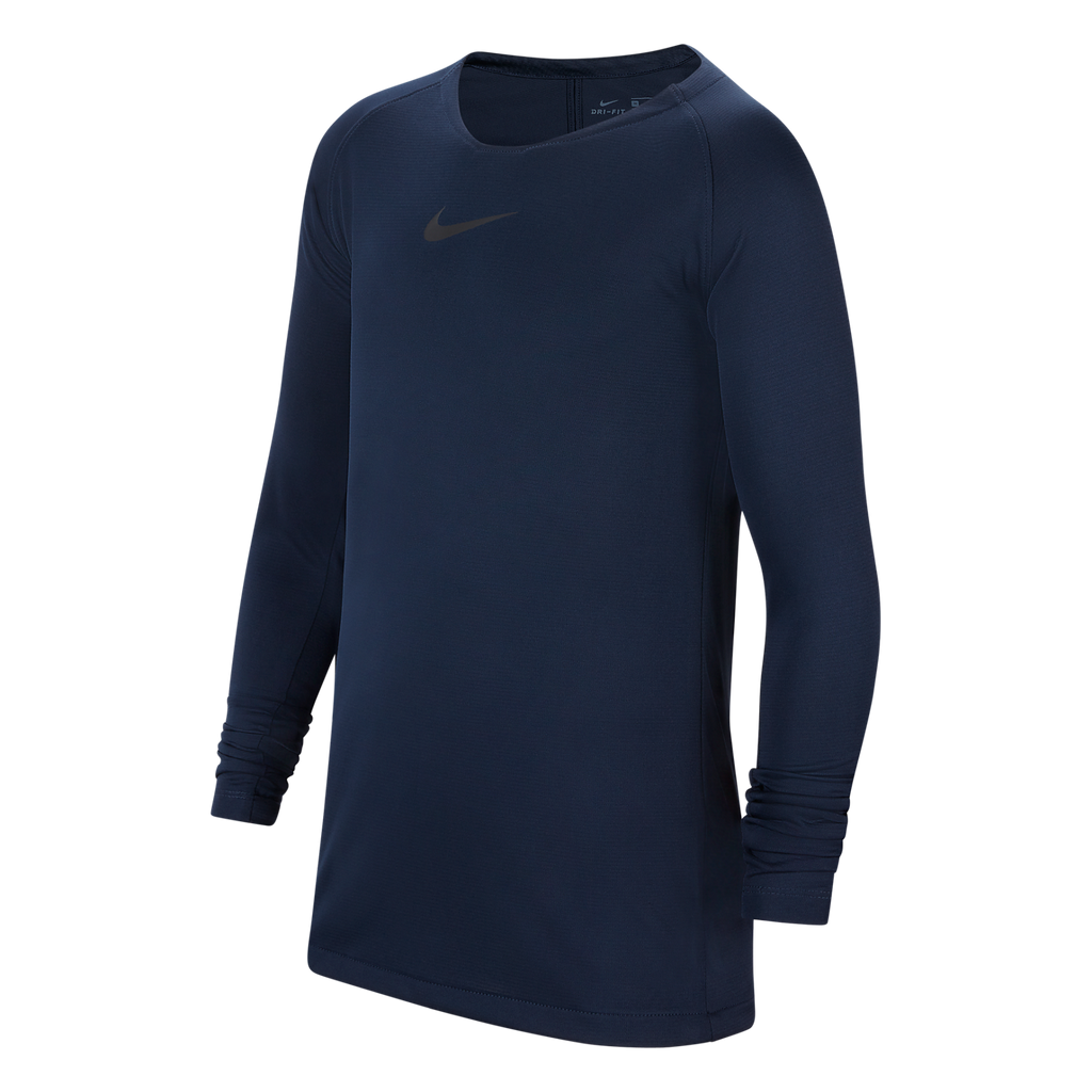 For matches when you need a little extra warmth, the Nike Dri-FIT Park First Layer Jersey provides coverage that won’t cut down your speed. The stretchy fibers and Invisible Thumb Loops create a streamlined layer that moves smoothly below your kit. This product is made with 100% recycled polyester fibers.