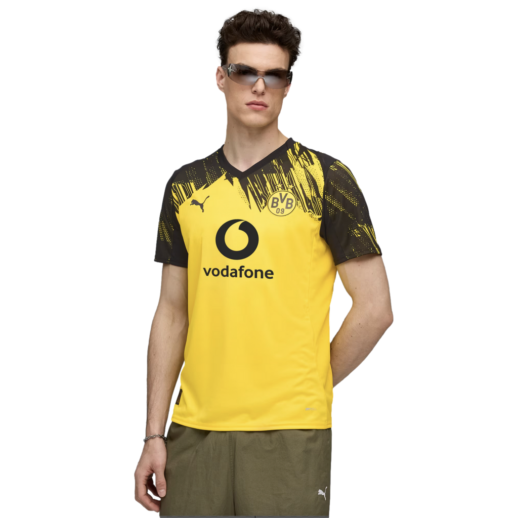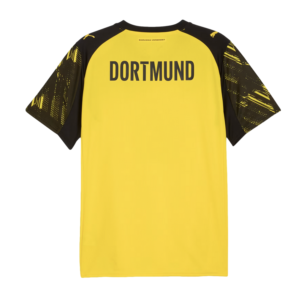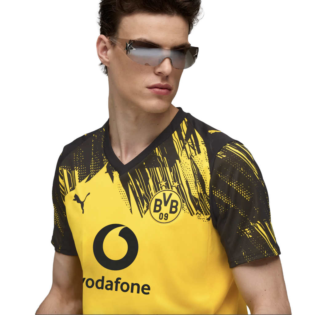 It all starts with Black and Yellow. One voice becomes hundreds, hundreds become thousands, until the whole stadium is vibrating. The 25/26 BVB Home Kit brings that energy to the surface with a classic yellow base and distorted black graphics across the chest. Because everyone who’s ever been to a BVB home match knows these aren’t just colors: they’re The Loudest Colors in Soccer.