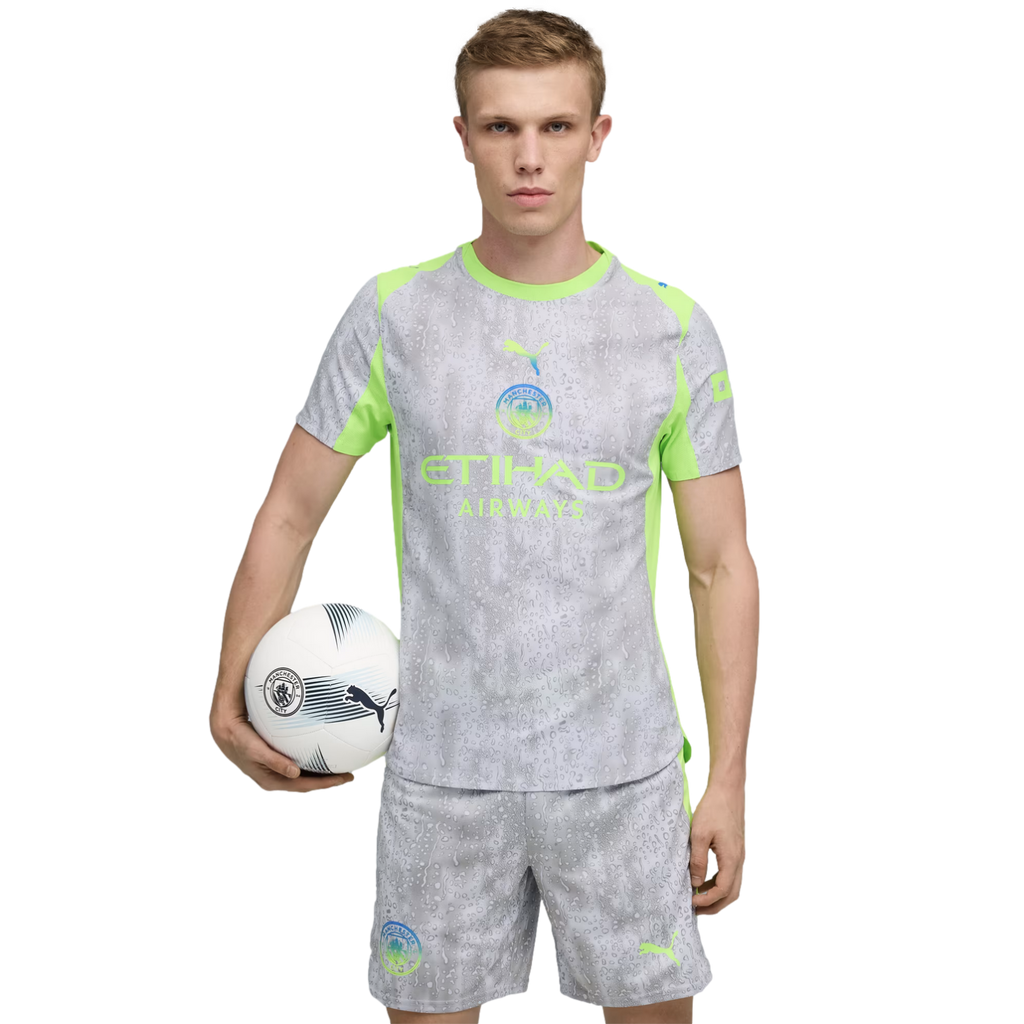 Man City are a symbol of the people, the culture, and the humor of Manchester. That’s why the 25/26 Third Kit is a tribute to Mancunian weather, designed for those who carry City in their hearts, rain or shine. (Though, let’s be honest, mostly rain.)