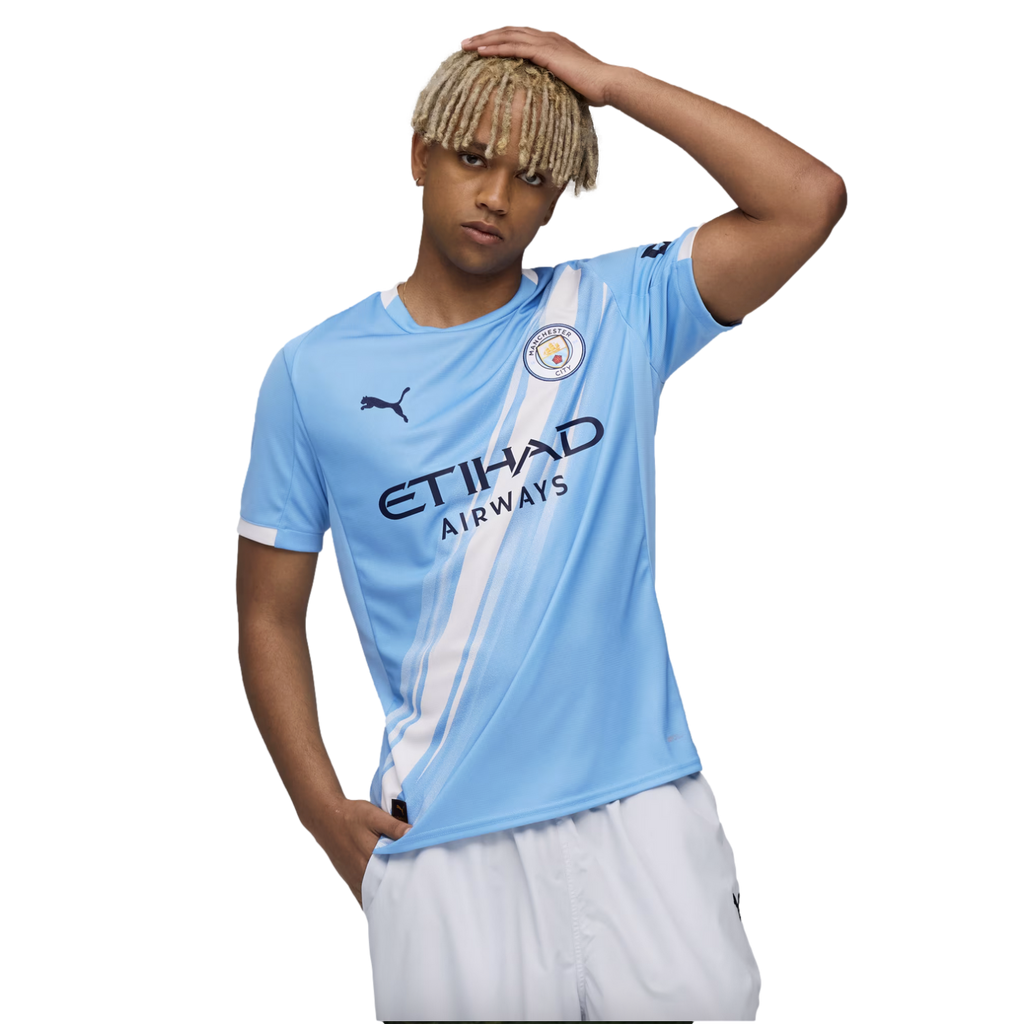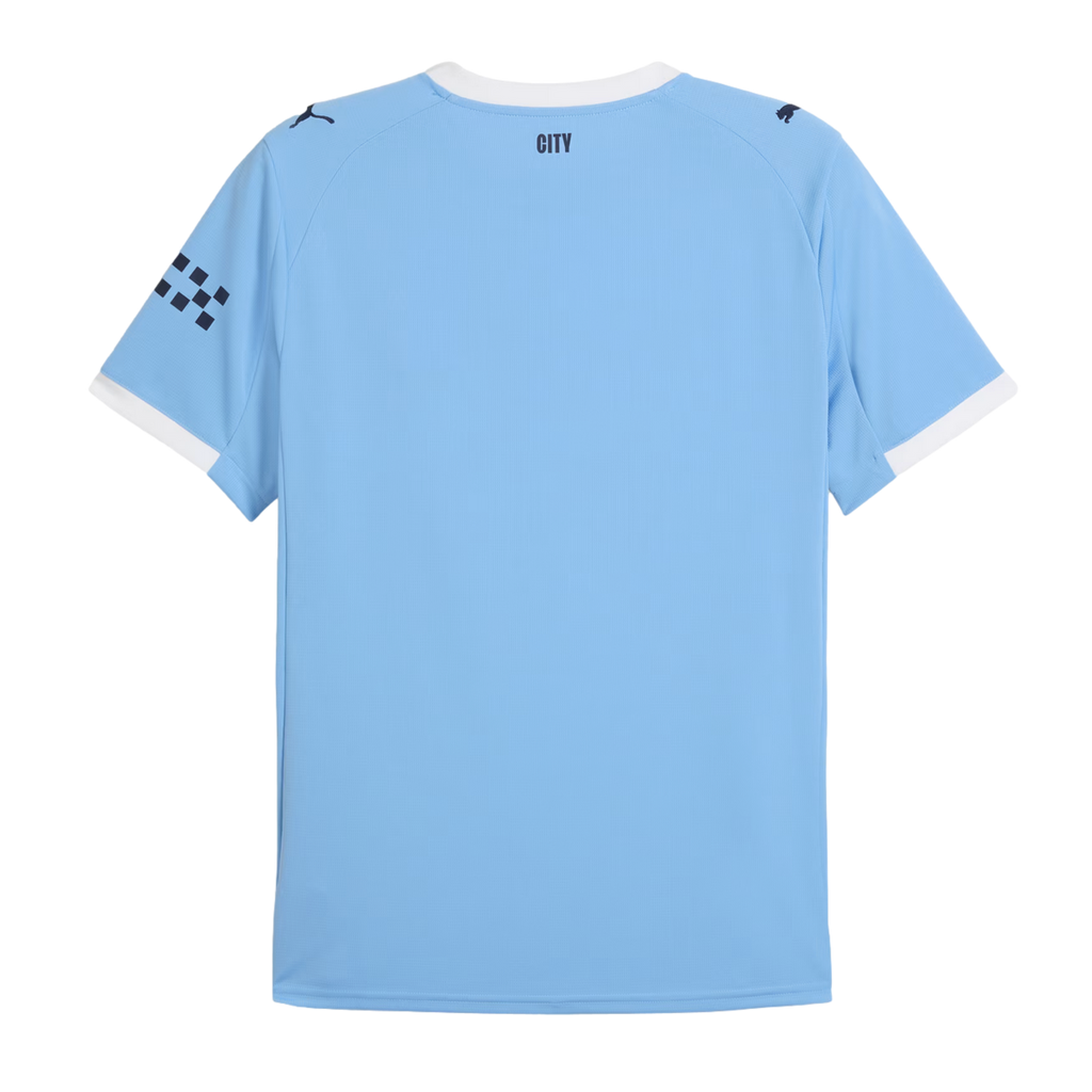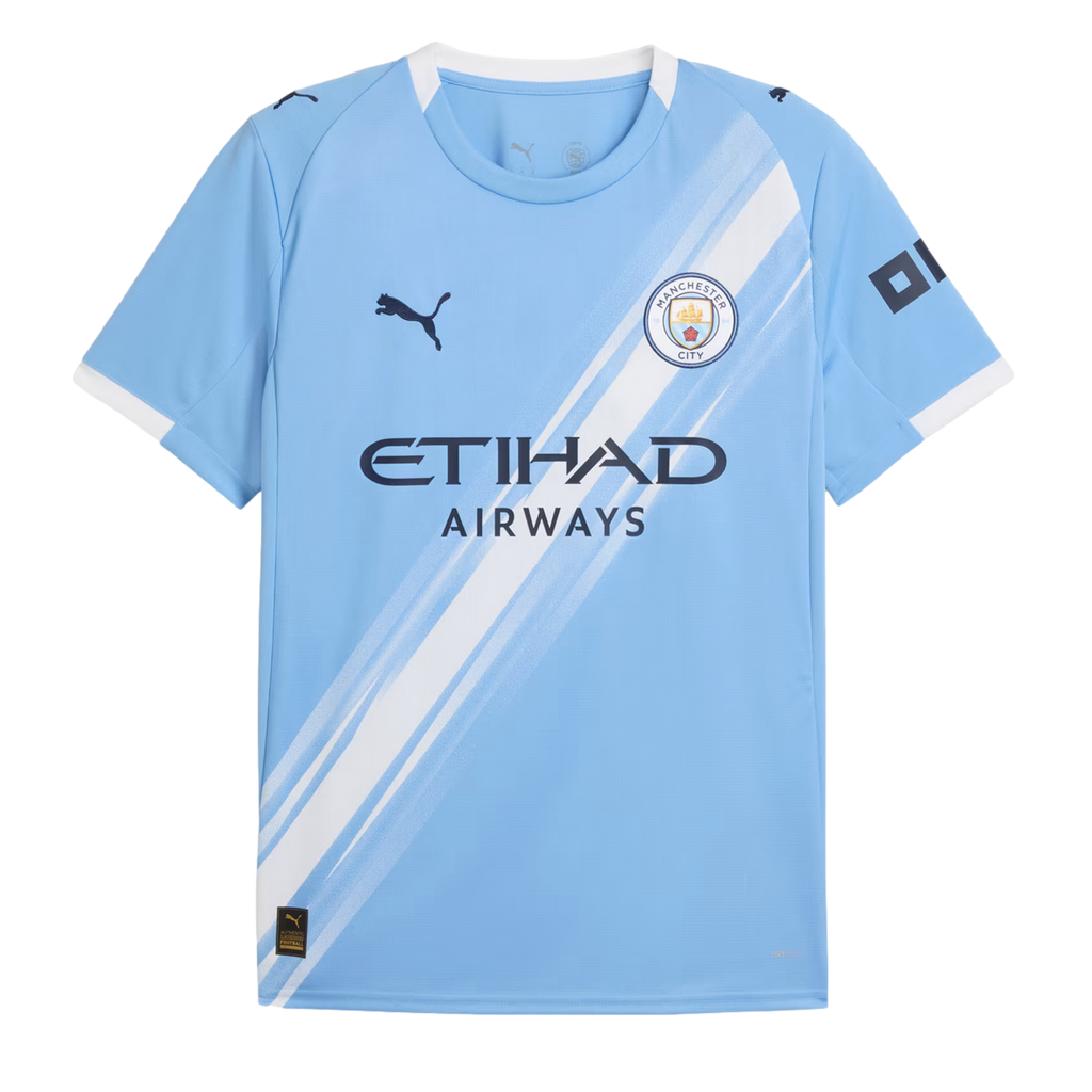 Because at City, we do it our way. For the first time in club history, the home kit features the sash – the diagonal stripe design made iconic on away days. Paired with the unmistakable Sky Blue and reimagined for the next generation, it’s a connection to our past, a nod to our future, and a reminder that we do things differently here, on and off the pitch.
