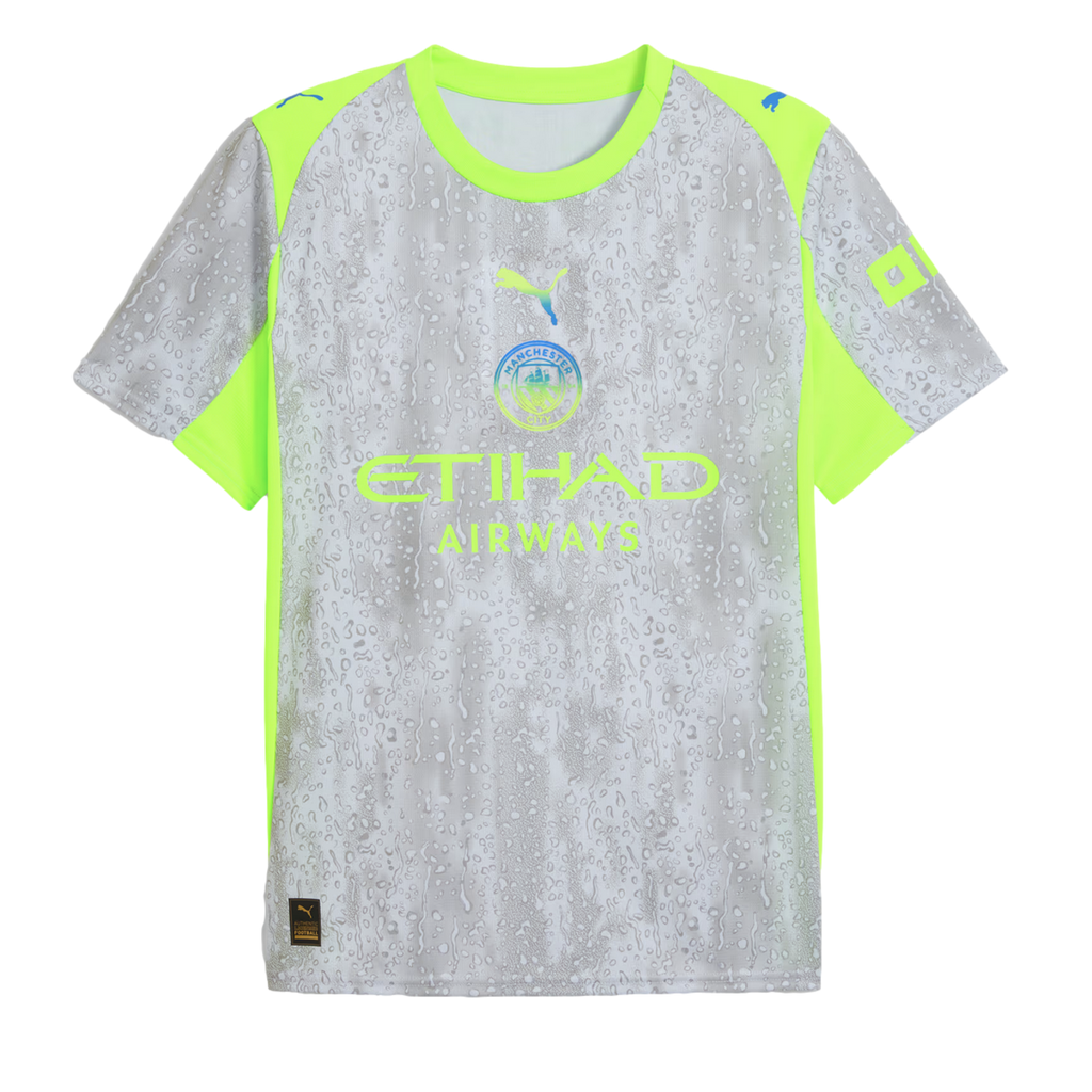 Man City are a symbol of the people, the culture, and the humor of Manchester. That’s why the 25/26 Third Kit is a tribute to Mancunian weather, designed for those who carry City in their hearts, rain or shine. (Though, let’s be honest, mostly rain.)