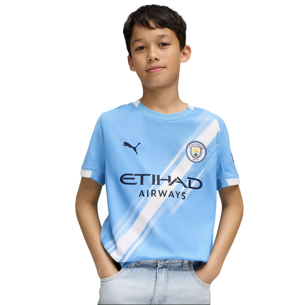 Because at City, we do it our way. For the first time in club history, the home kit features the sash – the diagonal stripe design made iconic on away days. Paired with the unmistakable Sky Blue and reimagined for the next generation, it’s a connection to our past, a nod to our future, and a reminder that we do things differently here, on and off the pitch.