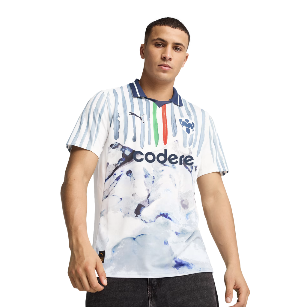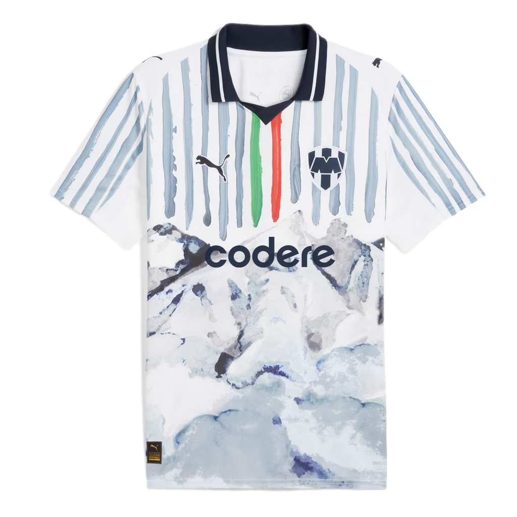 Not many stadiums come with a view like this. The iconic backdrop to C.F. Monterrey’s home ground – shaped by the peaks of Cerro de la Silla – takes center stage in this kit designed by Brooklyn-based artist KidSuper. Reimagined in sweeping watercolor, it’s Monterrey redrawn for the world stage. This kit is part of the PUMA x KIDSUPER collection, where hand-drawn graphics, watercolor palettes, and designs rooted in club culture come together for a fresh take on the Beautiful Game.