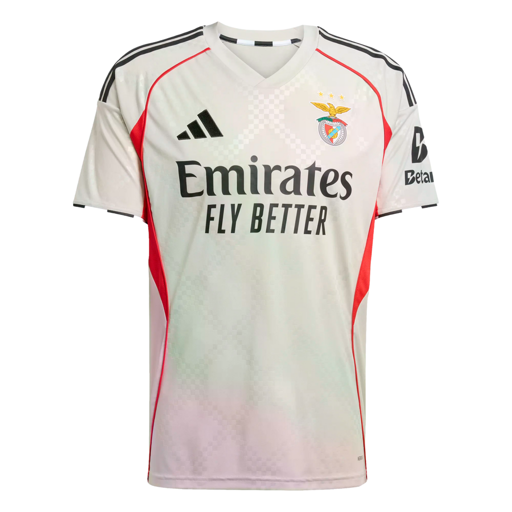 Feel the energy of Lisbon's street soccer scene on Benfica's away days. The earthy colors, cage-inspired embossing and bold back neck sign-off on this adidas jersey are all nods to the environment where the best ballers learn their trade. Working hard in the background, moisture-managing AEROREADY keeps you comfortable wherever your play your beautiful game.
