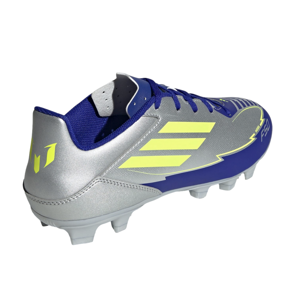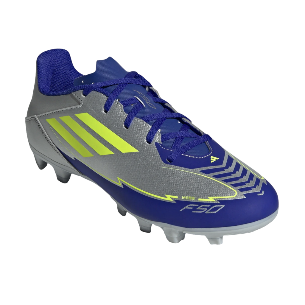 Legendary F50 pace. Mesmerising Messi skills. Built to match the GOAT's on-field preferences, these adidas boots team a supportive synthetic upper with a lightweight tongue so nothing distracts you from calling the shots. It all sits on a versatile outsole that's capable of conjuring football magic on firm ground and artificial grass pitches. This product features at least 20% recycled materials. By reusing materials that have already been created, we help to reduce waste and our reliance on finite resources and reduce the footprint of the products we make.