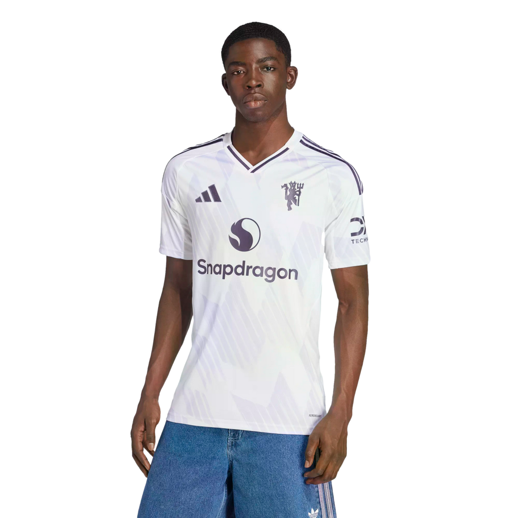 An away supporter jersey that remixes classic adidas x Man Utd DNA.