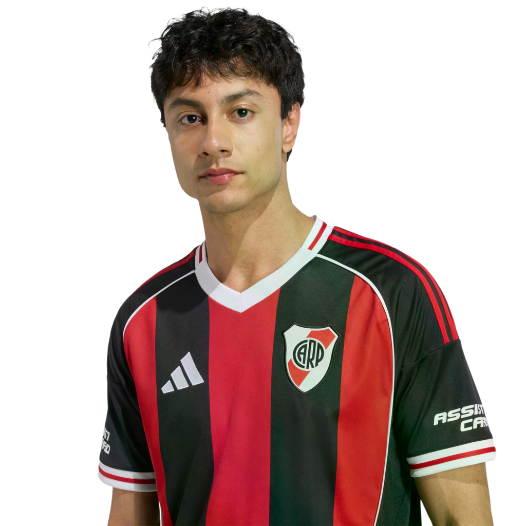 Celebrate an iconic moment in River Plate's rich history by pulling on this adidas away jersey. Borrowing its black and red stripes from the hot air balloon that famously landed on the pitch during the club's 1975 title-winning celebrations, it's sure to spark nostalgia for a glorious past. Moisture-managing AEROREADY keeps you comfortable and a woven badge pumps up your soccer pride.