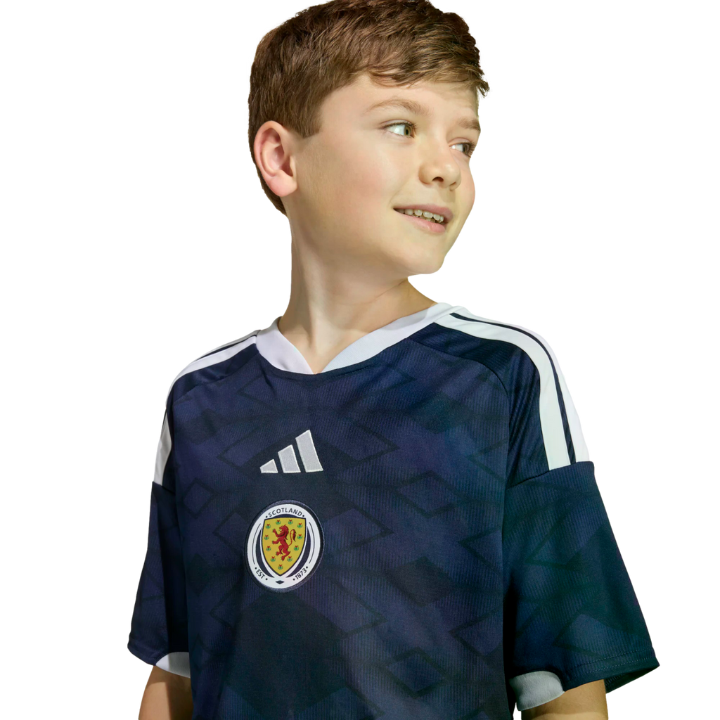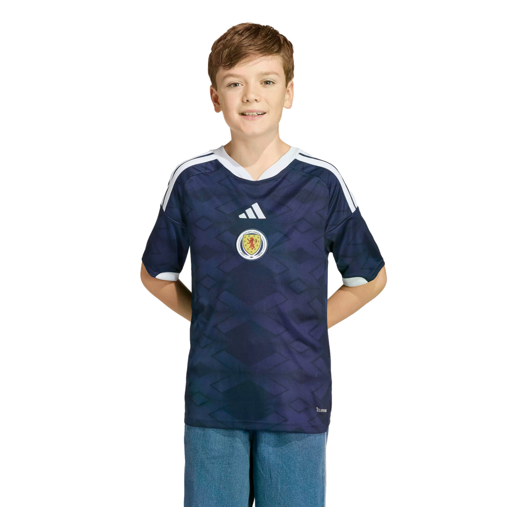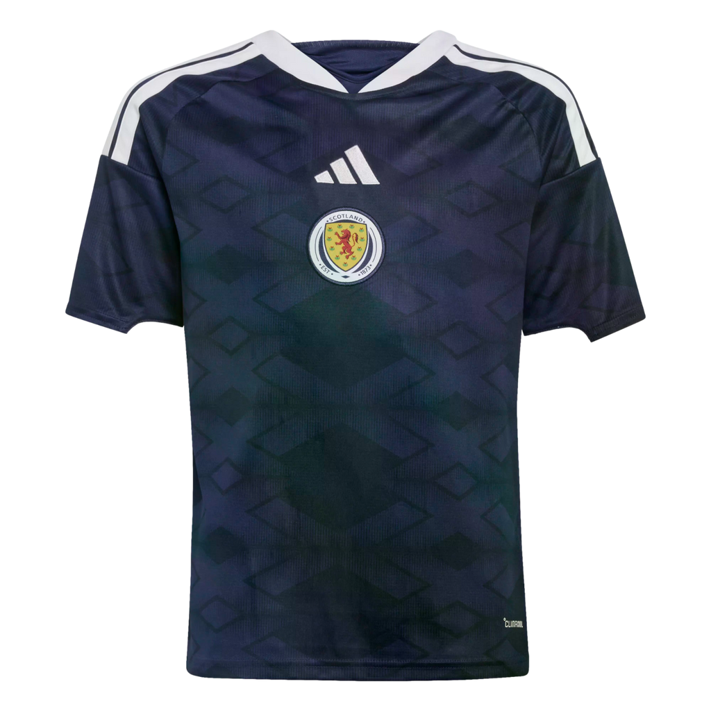 The simple but striking geometry of the Scottish Saltire inspires the Scotland 26 Home Jersey—a look that captures national pride in style. Built for young players, it features adidas Climacool technology to help them feel fresh with fast-drying fibers for a fresh skin feel, game in and game out.