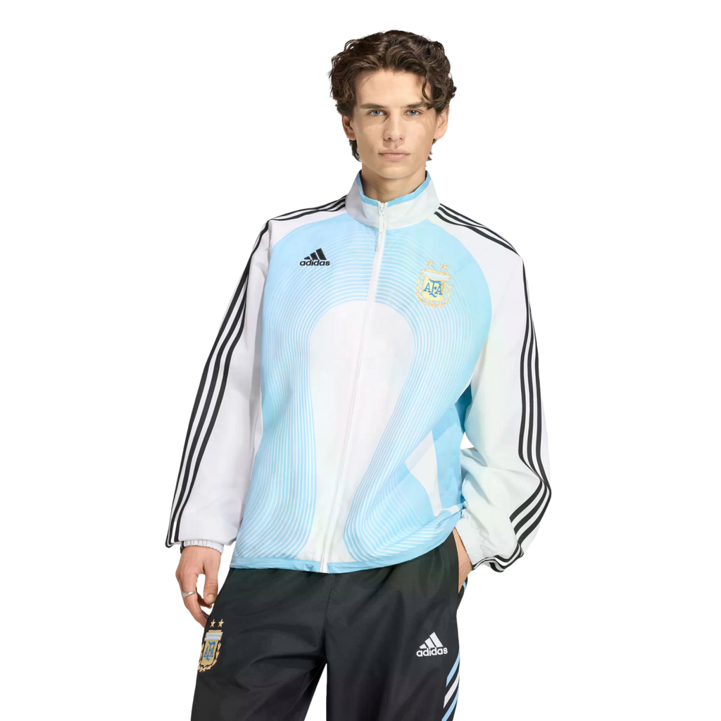 Turn back time with the Argentina Home Track Top 2006, a nostalgic nod to soccer history. This track top revisits the iconic style of Argentina's 2006 home kit, blending heritage with modern comfort. This product speaks to all vintage and retro lovers. Crafted for fans and casual wearers alike, the top features a loose fit for a relaxed look. The full zipper and stand-up collar offer versatile styling options, while the mesh details provide breathability during your everyday activities. Whether you're cheering from the stands or heading out with friends, make this adidas track top your go-to choice.