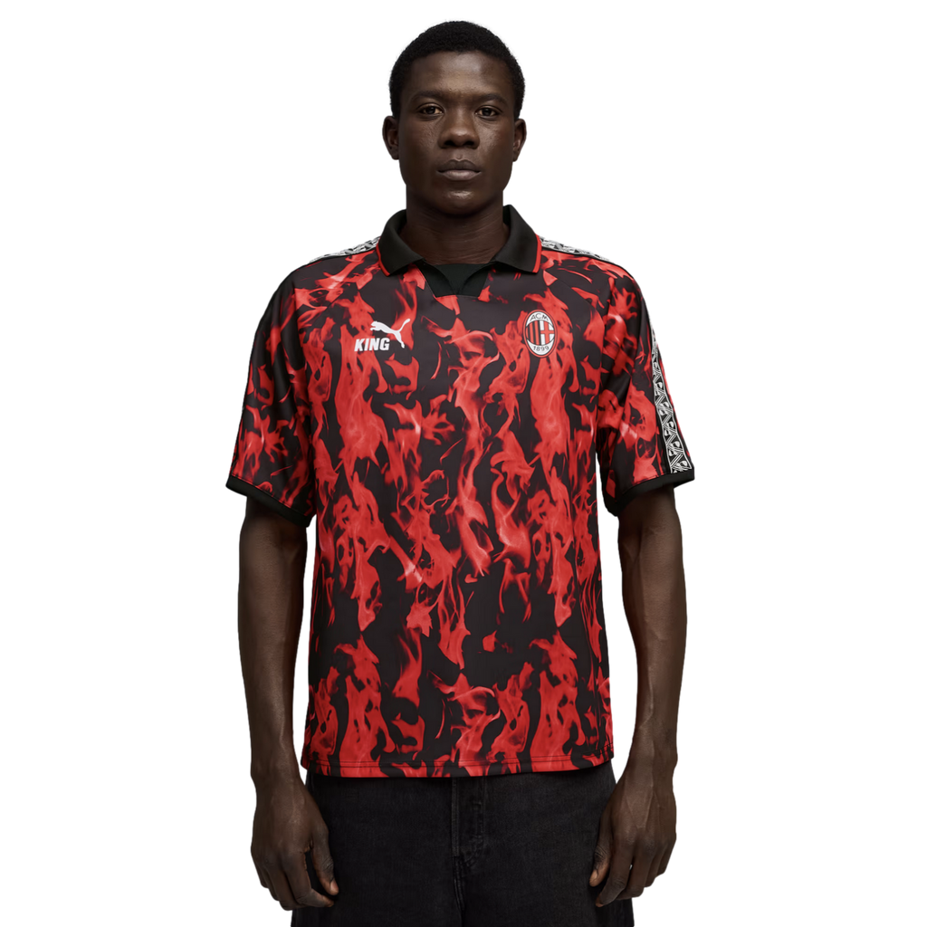 This retro AC Milan jersey celebrates the legacy of the KING line, blending timeless elements with an archive-inspired aesthetic. It's a tribute to true royalty on and off the pitch.
