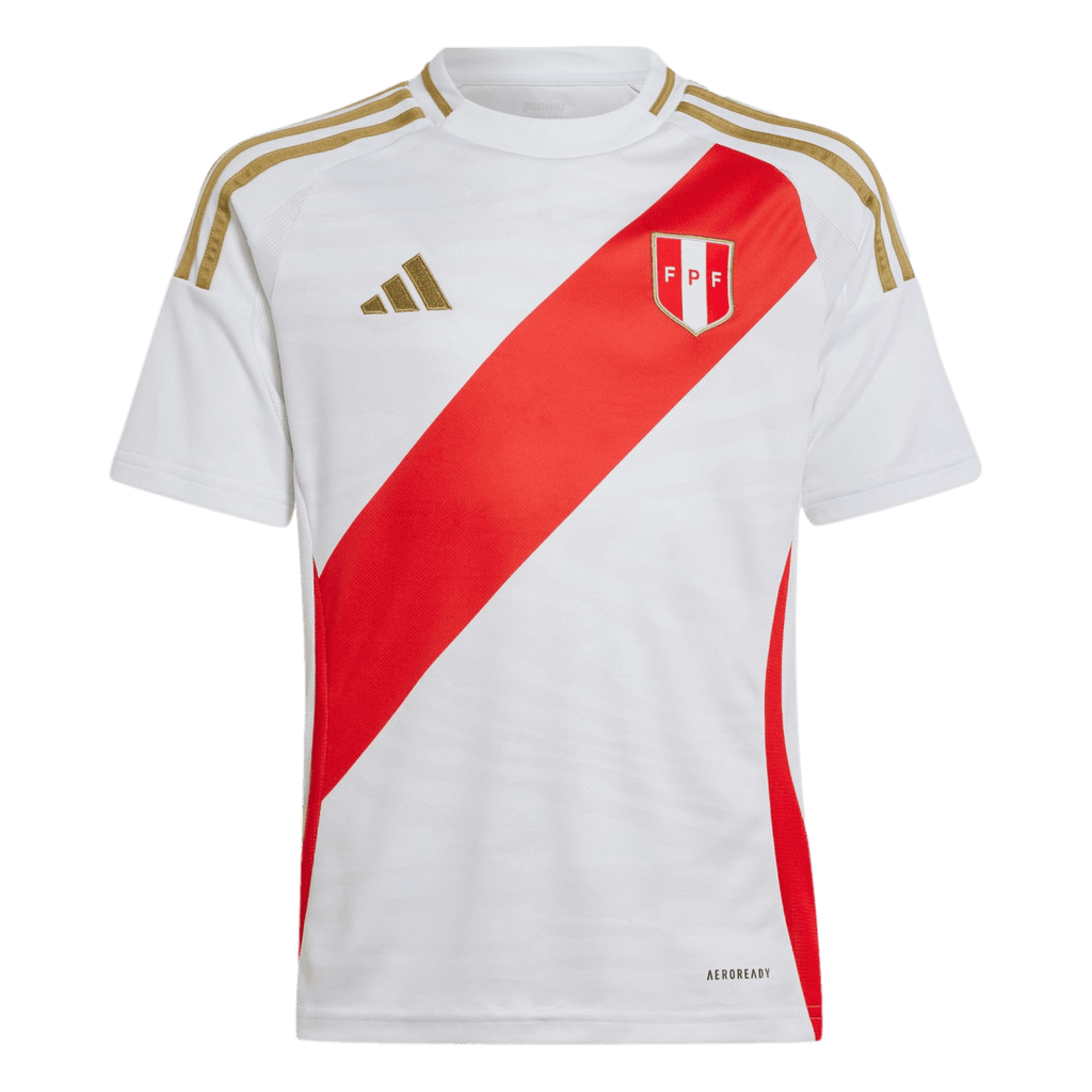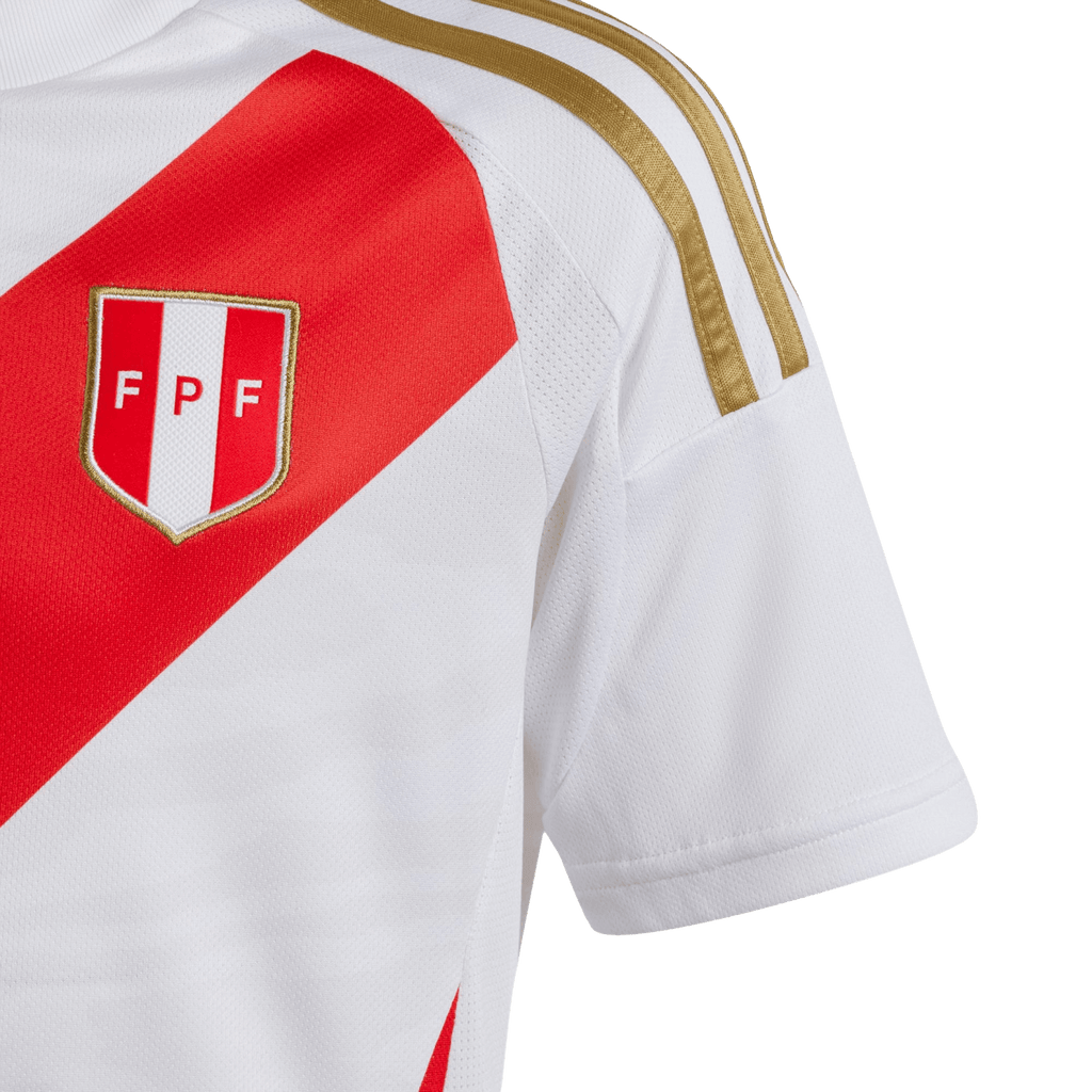Show your passion for the game in this Peru 2024 Home Jersey, designed for male youth soccer enthusiasts. Made with moisture-managing AEROREADY, this jersey is perfect for on-field play or for showing off your support at the matches. Look sharp and stay comfortable in the Peru 2024 Home Jersey.