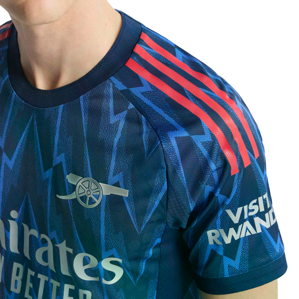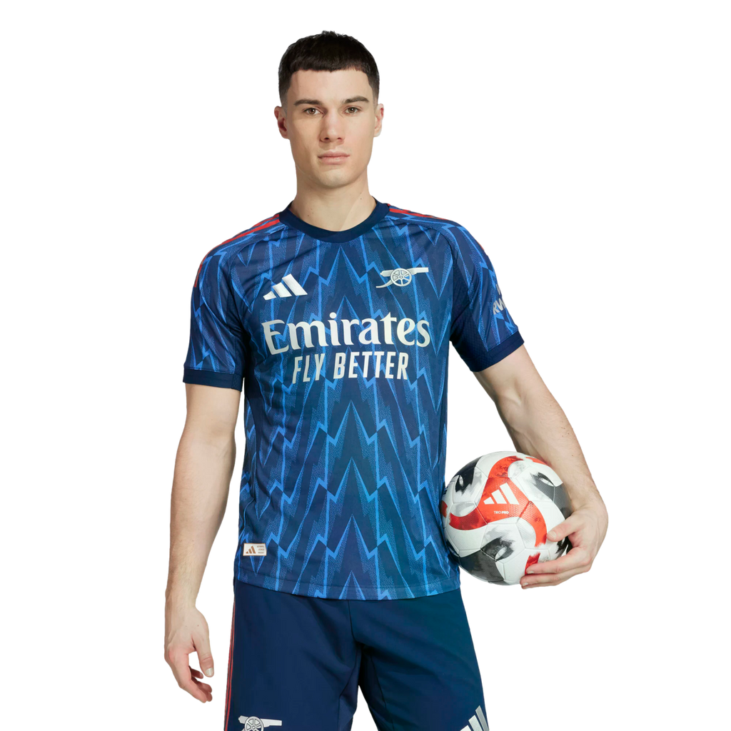 Flashback through Arsenal's history and you'll see the lightning bolt has been a fixture. This adidas authentic soccer jersey brings the iconic motif back with a bang thanks to a thoroughly modern light-blue-and-navy all-over print. Its performance-focused construction ensures players stay fully charged on the field.