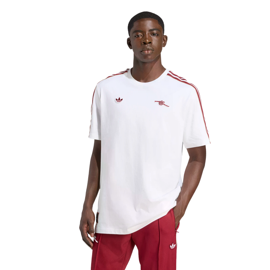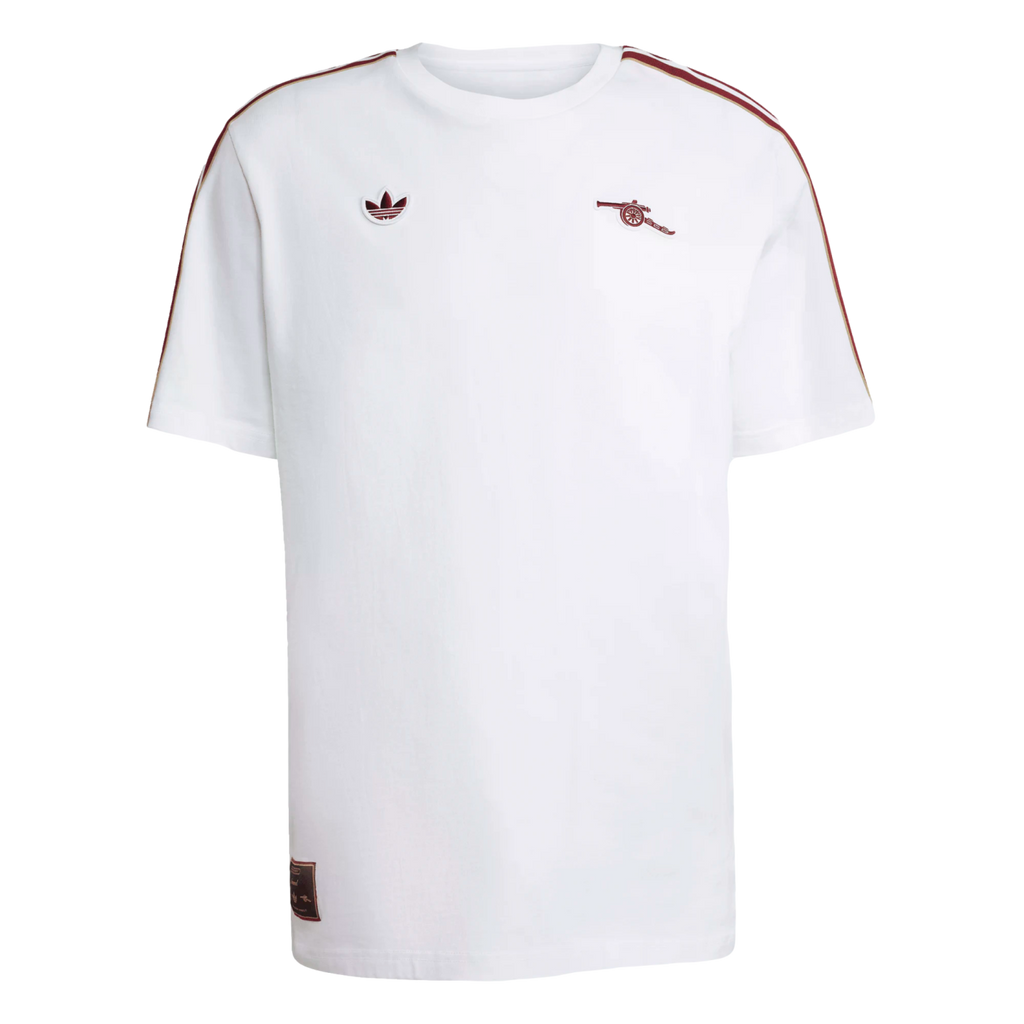 Relive one of the beautiful game's most memorable eras in this adidas Arsenal tee. Inspired by '80s terrace fashions, the design includes a cannon badge on the chest and a vintage club crest on the back neck. The soft cotton build will keep you comfortable whether you're cheering on the Gunners or simply showing your soccer colors.