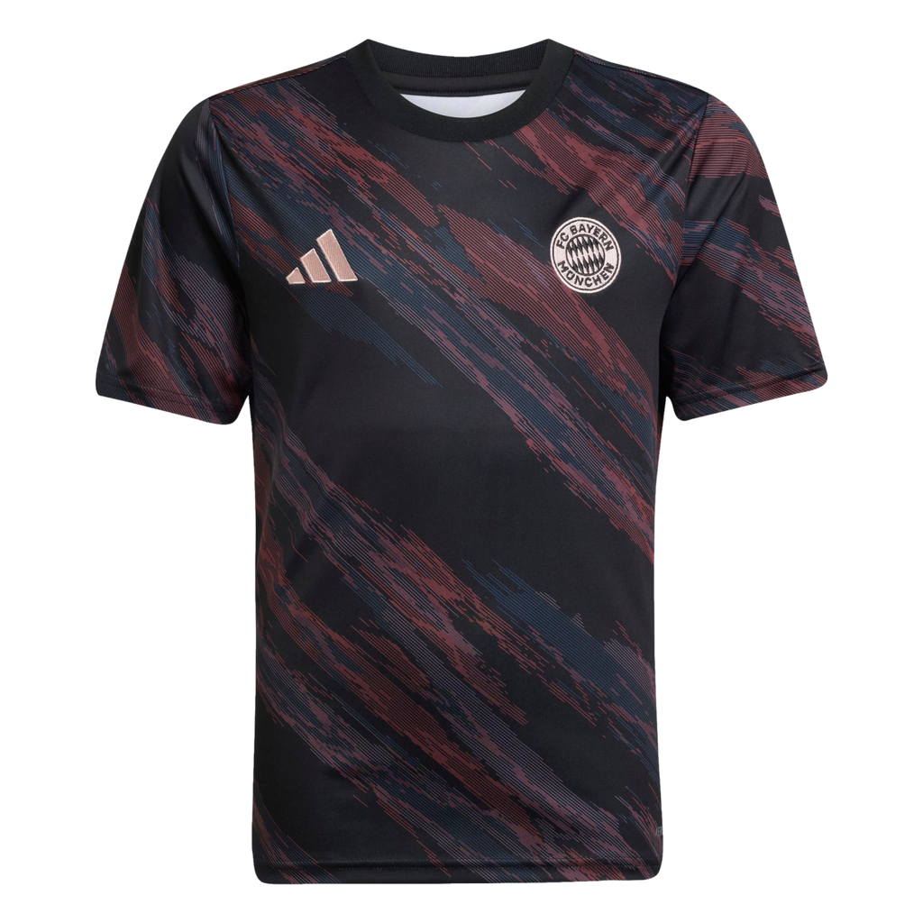 Celebrate 20 years of the iconic Allianz Arena in this juniors' FC Bayern pre-match jersey from adidas. Borrowing from the club's away kit look, bold graphics pay tribute to the stadium's vibrant colors during evening games. Behind the scenes, AEROREADY keeps you dry during the most intensive warm-ups. A club crest ensures you feel at home no matter how much effort you're putting in.