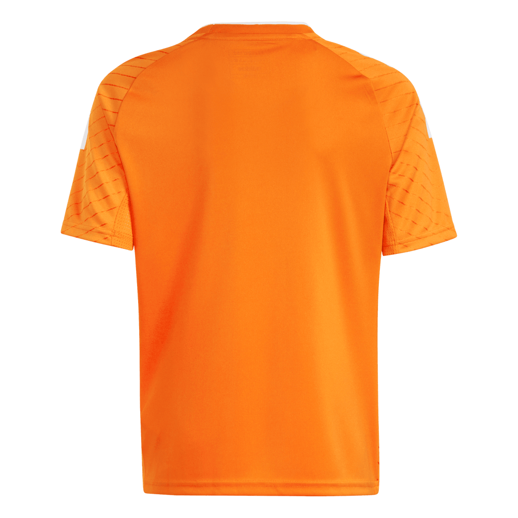 Stay dry when the action heats up on the football pitch. This juniors' match day jersey from adidas features AEROREADY to keep you comfortable all game long. Signature 3-Stripes on the shoulders and a 3 Bar Logo give it a classic finish. Made with 100% recycled materials, this product represents just one of our solutions to help end plastic waste.