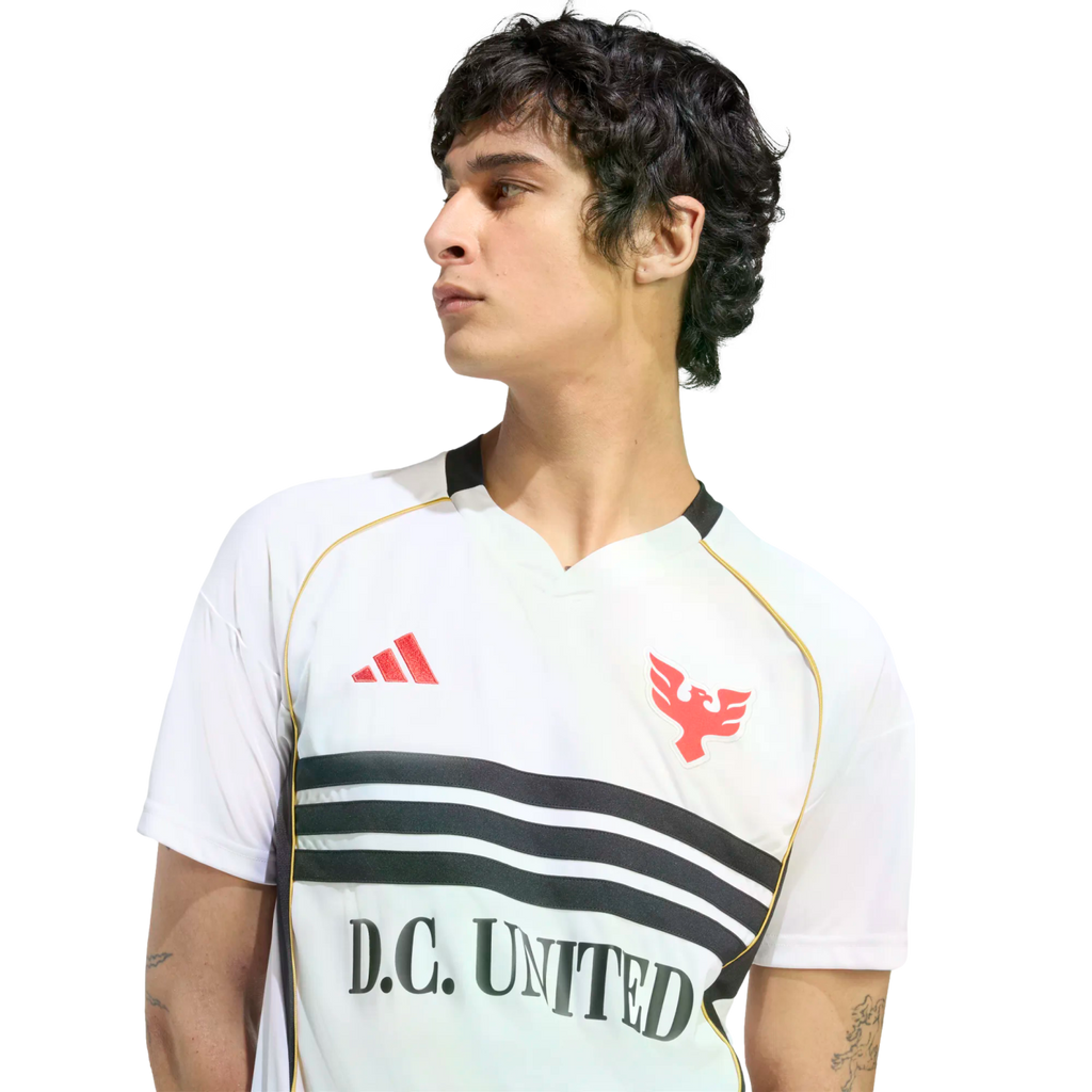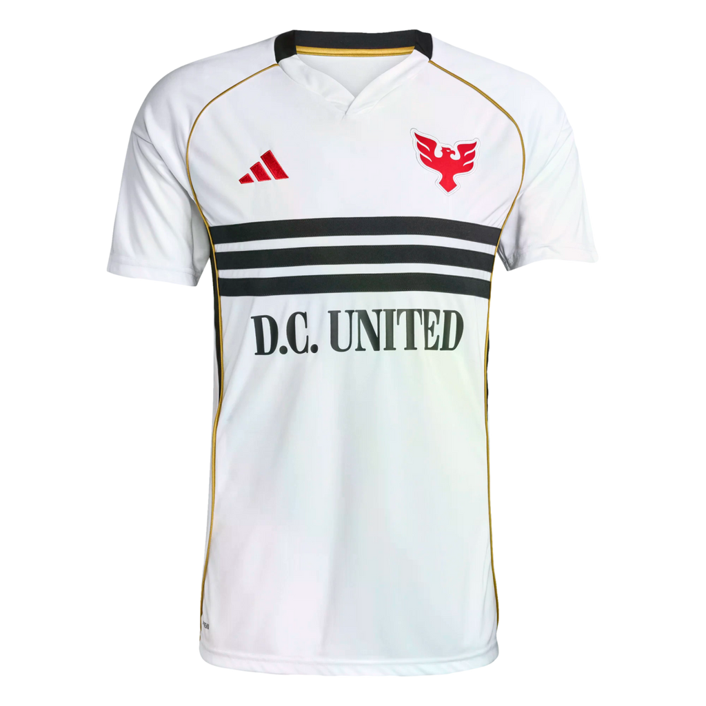 Celebrating their golden touch. This adidas third jersey pays homage to D.C. United's title-winning early days. Inspired by the team's first-ever kit, it brings back those famous horizontal 3-Stripes. A secondary crest, bold team name and golden details complete the clean look. AEROREADY ensures soccer fans stay comfortable while they cheer DCU to new heights.