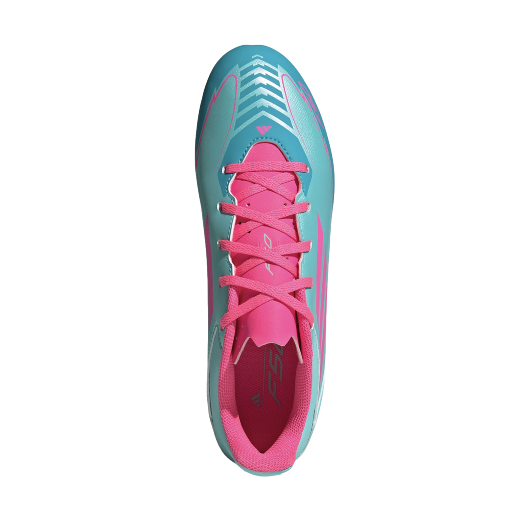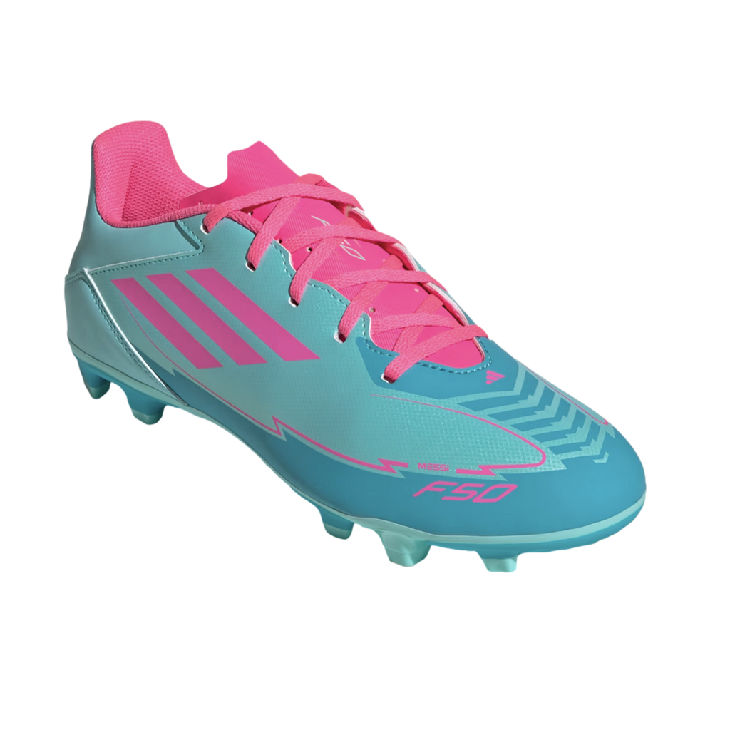 Legendary F50 pace. Mesmerising Messi skills. Built to match the GOAT's on-field preferences, these adidas boots team a supportive synthetic upper with a lightweight tongue so nothing distracts you from calling the shots. It all sits on a versatile outsole that's capable of conjuring football magic on firm ground and artificial grass pitches. This product features at least 20% recycled materials. By reusing materials that have already been created, we help to reduce waste and our reliance on finite resources and reduce the footprint of the products we make.