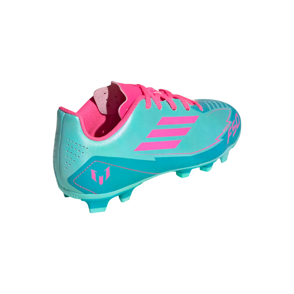 Legendary F50 pace. Mesmerising Messi skills. Built to match the GOAT's on-field preferences, these juniors' adidas boots team a supportive synthetic upper with a lightweight tongue so nothing distracts you from calling the shots. It all sits on a versatile outsole that's capable of conjuring football magic on firm ground and artificial grass pitches. This product features at least 20% recycled materials. By reusing materials that have already been created, we help to reduce waste and our reliance on finite resources and reduce the footprint of the products we make.