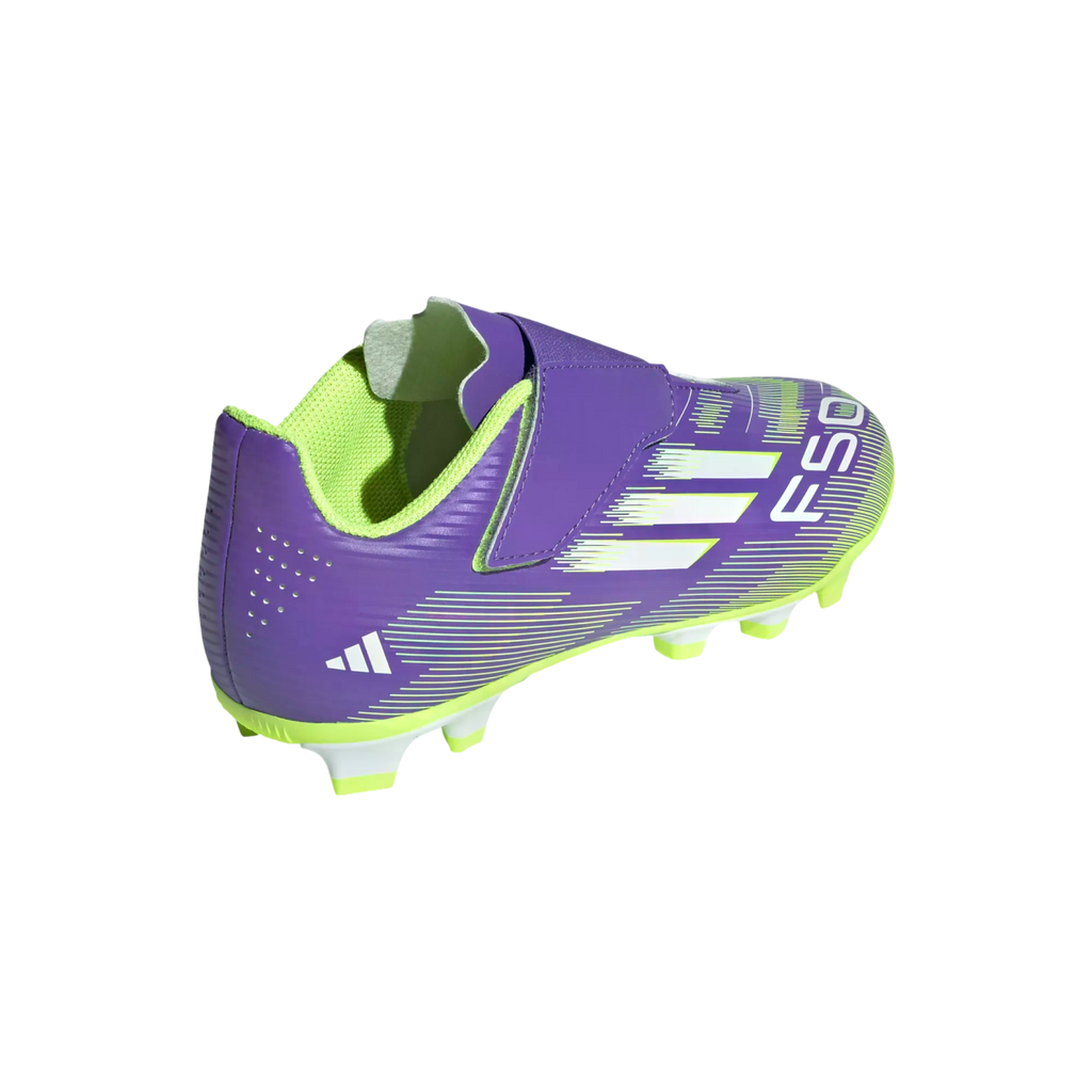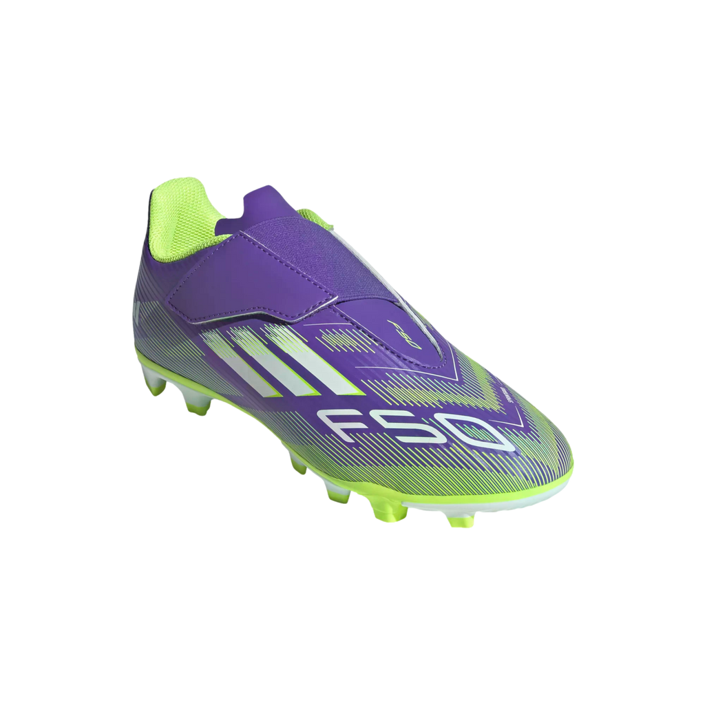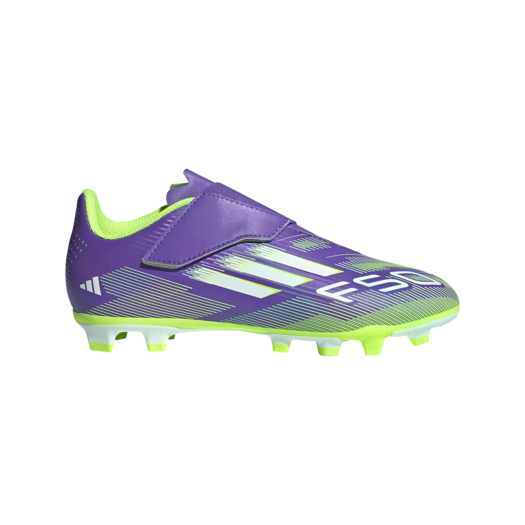 Find your fast to truly express yourself on the field. Feel the rush in adidas F50 boots engineered for speed. These juniors' Club football boots keep you comfortable on the move with a textured synthetic upper and wide hook-and-loop strap. Turn them over and you'll find an outsole that supports speedy play on firm ground and artificial grass pitches.