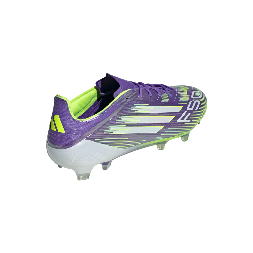 Find your fast to truly express yourself on the field. Feel the rush in adidas F50 cleats engineered for speed. These Elite soccer cleats have a thin Fibertouch upper with a Compression Fit Tunnel Tongue for lockdown and a Sprintweb 3D texture to help keep the ball close when you're flying. Designed for dry grass pitches, the springy Sprintframe 360 outsole supports relentless pace.