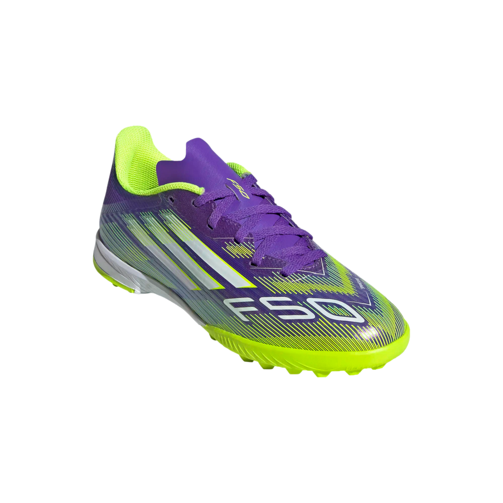 Find your fast to truly express yourself on the field. Feel the rush in adidas F50 cleats engineered for speed. Standing out with an eye-catching Sprintgrid print, the Fiberskin upper on these juniors' League soccer cleats employs a perforated tongue for cool play. A lug rubber outsole offers pace on artificial turf surfaces.
