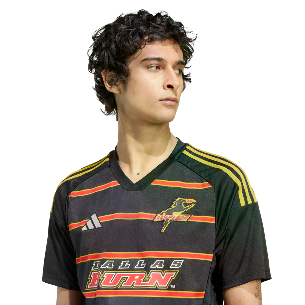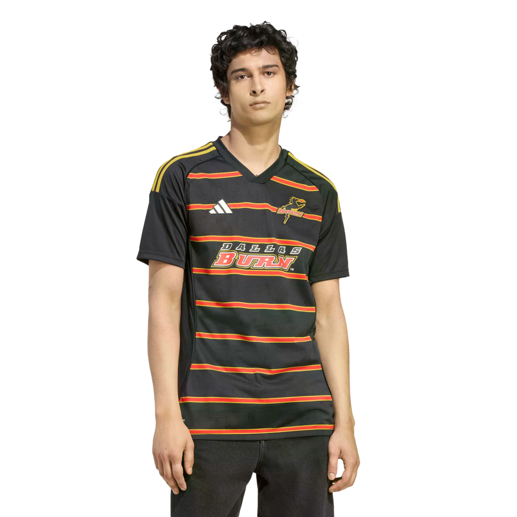 Bringing back the Burn. From those engineered hoops to the OG team name and crest, this adidas FC Dallas jersey fires off mid-'90s vibes left, right and center. Created to keep fans comfortable while they pay tribute, it features moisture-managing AEROREADY and soft fabric. Wherever you follow your team, this soccer jersey lets you do it in retro-inspired style.