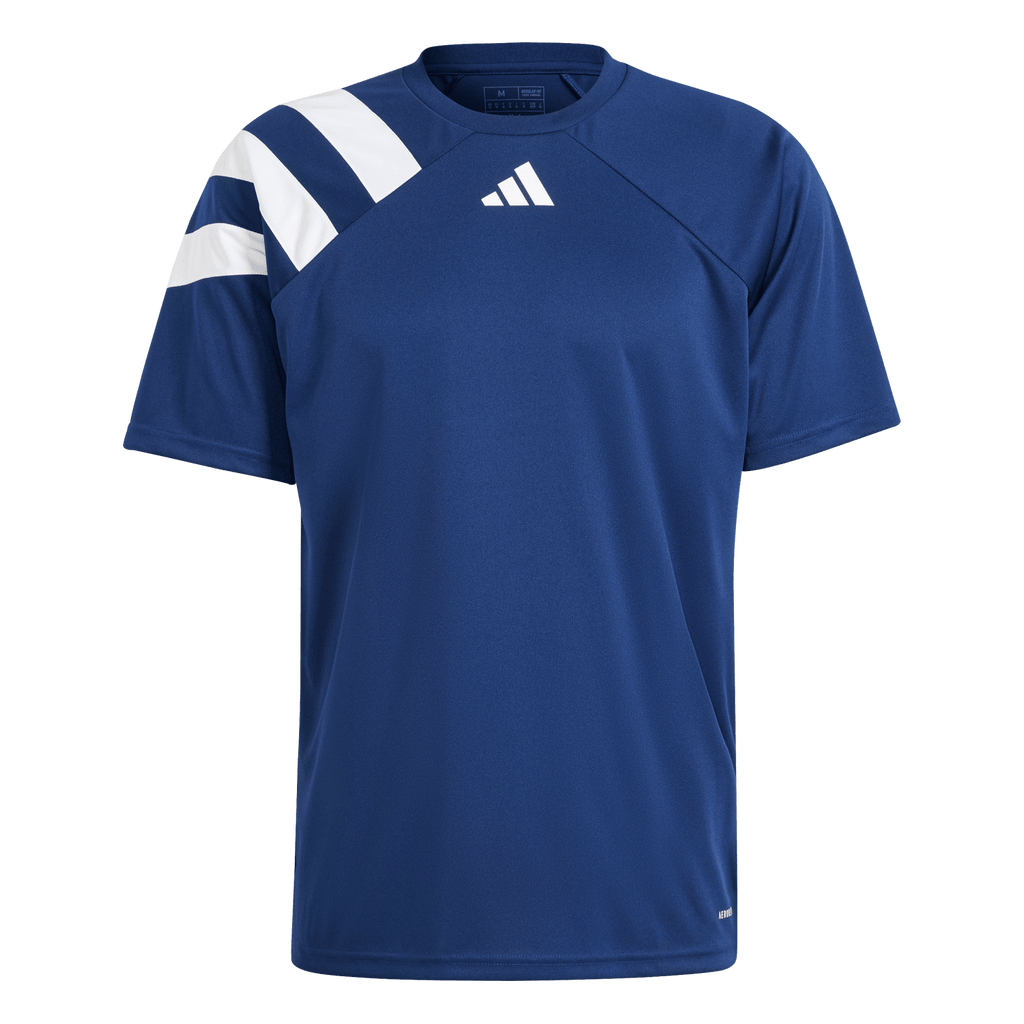 Find your football look in this Fortore 23 jersey. Created to keep your team standing out on the pitch, this eye-catching shirt shows off a design inspired by '90s adidas Equipment style. Moisture-absorbing AEROREADY keeps you dry, and the smooth interlock fabric offers a lightweight feel to ensure your mind stays on the match.Made with 100% recycled materials, this product represents just one of our solutions to help end plastic waste.