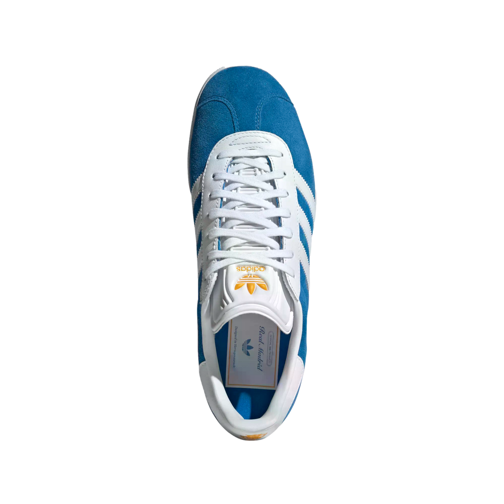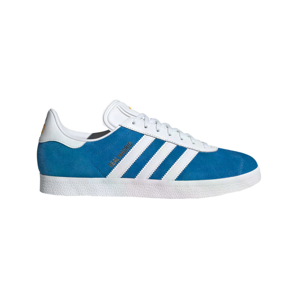 Step into a piece of 3-Stripes history while showing your soccer colors. Starring in signature details that include a soft suede upper, molded tongue and T-toe, these adidas Gazelle shoes will keep you comfortable whether you're headed to the game or kicking back at home. Real Madrid's third kit colors and crest show who you follow.