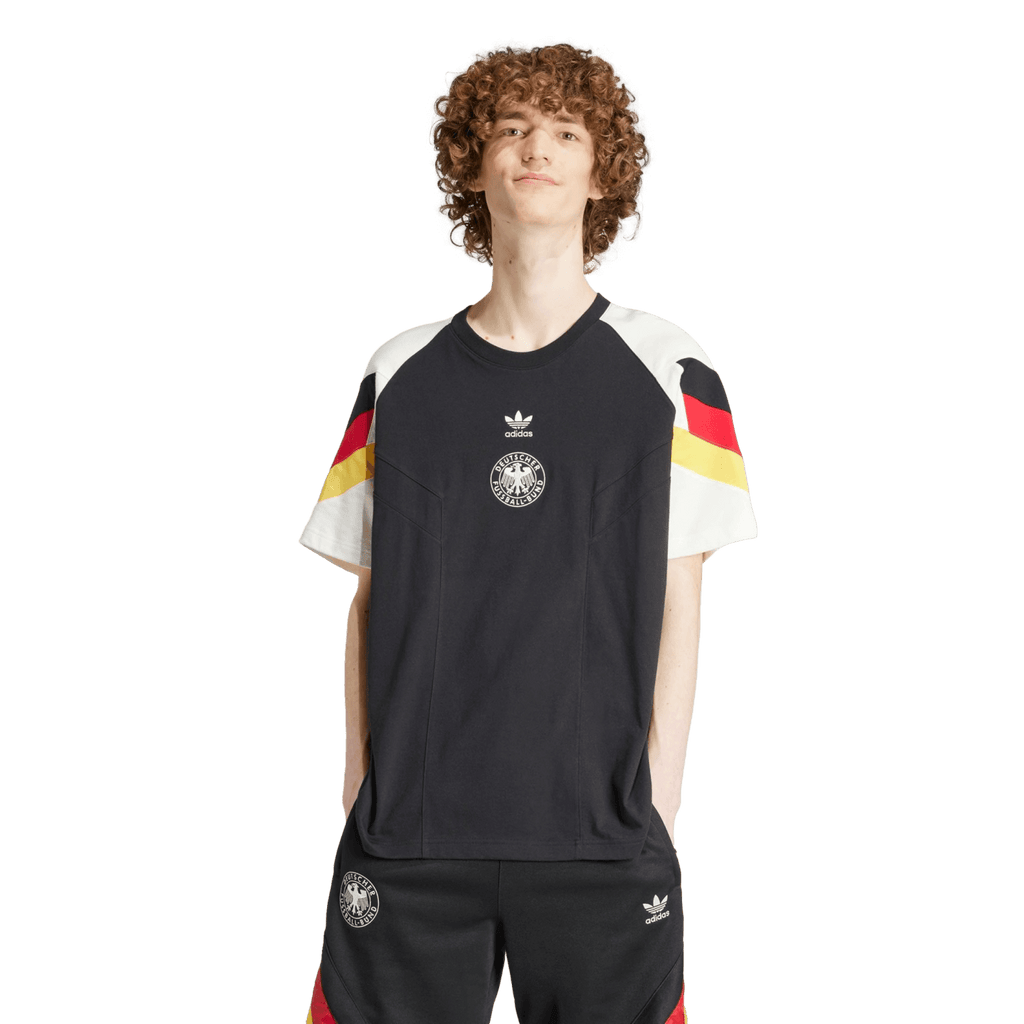 Vintage vibes meet modern style in this football tee. Straight out of the adidas archives, bold 3-Stripes in national flag colours and a centred Trefoil steal the show on the front. Soft single jersey fabric adds the kind of breathable comfort that's perfect for supporting your team during long summer evenings.