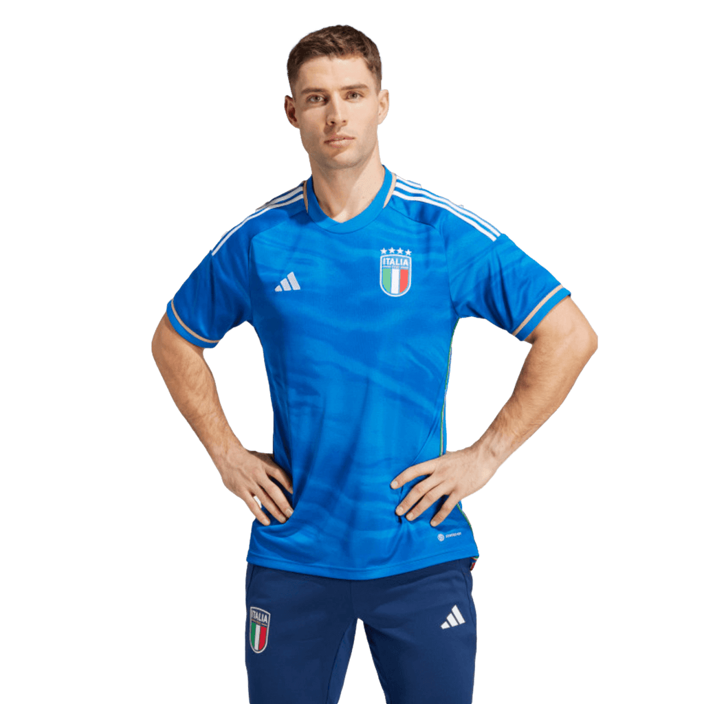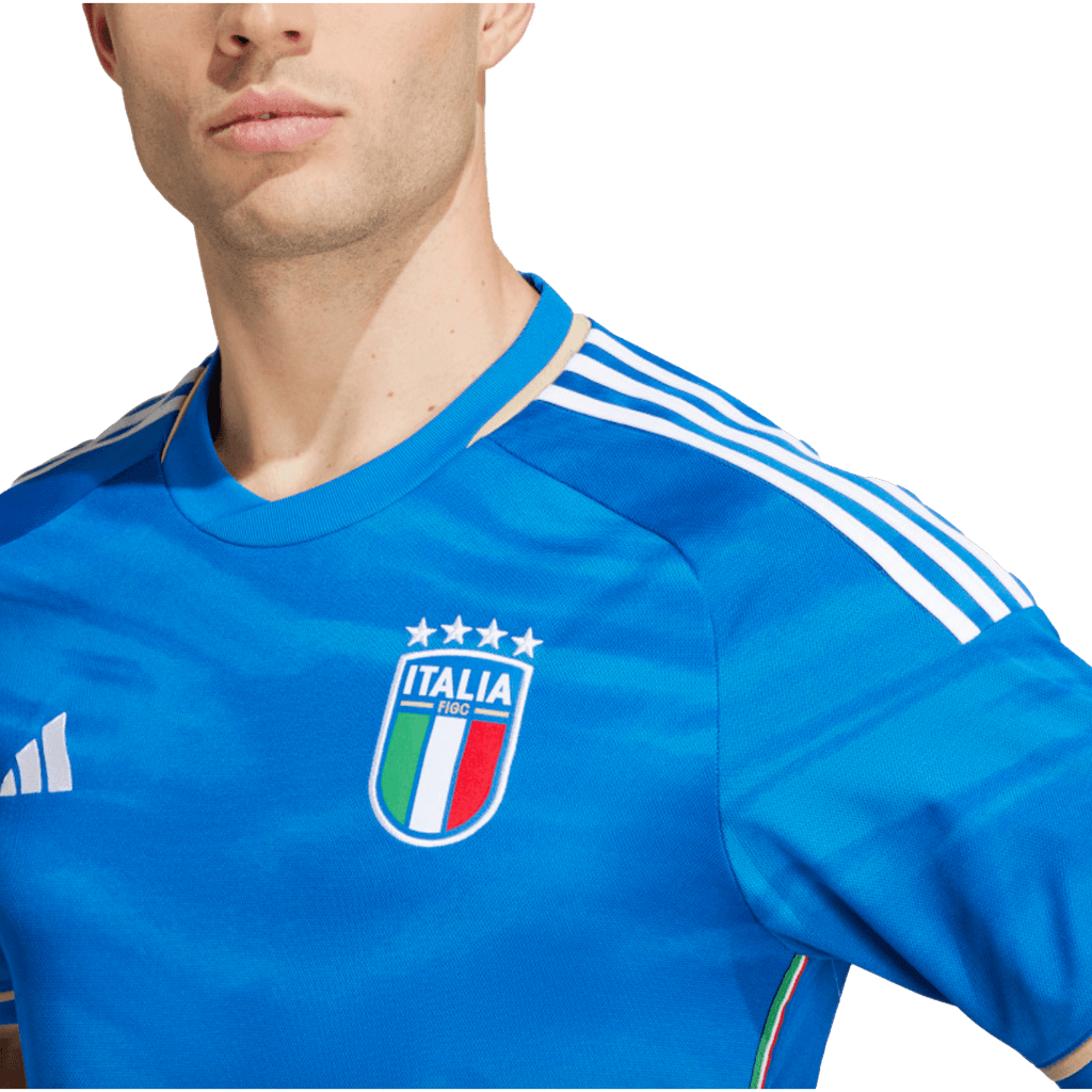 Italy to the core. The precious foundation upon which Italian culture is built, marble plays a central role in the design of this eye-catching soccer jersey. Alongside gold details and an "Italia" back-neck signoff, dark veins stand out over those famous Azzurri colors. Created by adidas for fans, this version of the shirt includes moisture-absorbing AEROREADY and a woven badge. Made with 100% recycled materials, this product represents just one of our solutions to help end plastic waste.