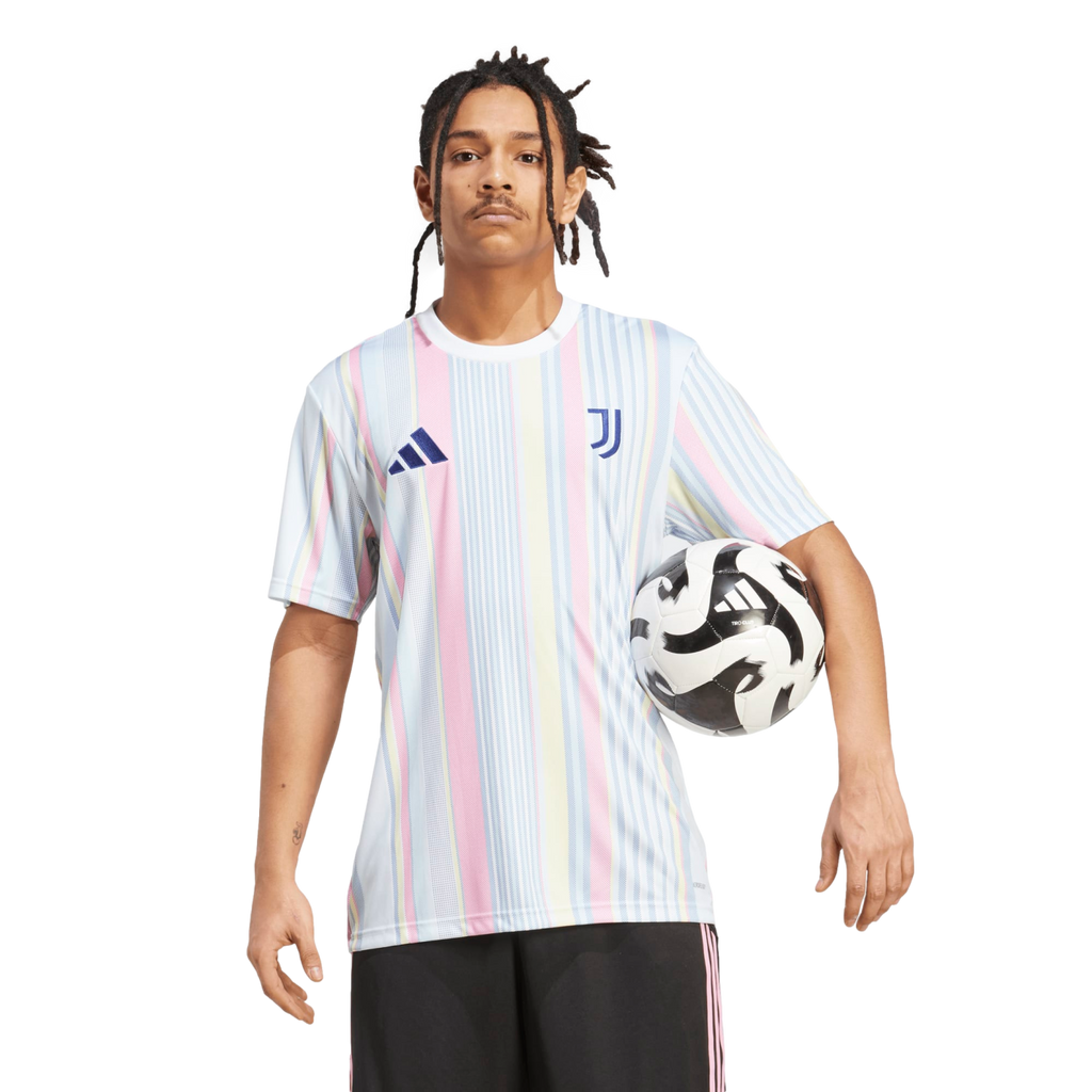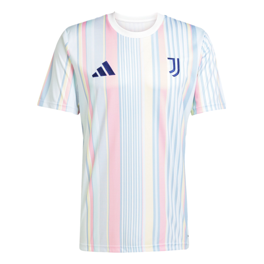 Summer-ready stripes. This Juventus jersey's vibrant look takes design elements from the club's adidas home and away jerseys in the 25/26 season. Moisture-managing AEROREADY and lightweight fabric mean it's the ideal top for the club's players to wear before games. An embroidered club badge shows you stand with your team.