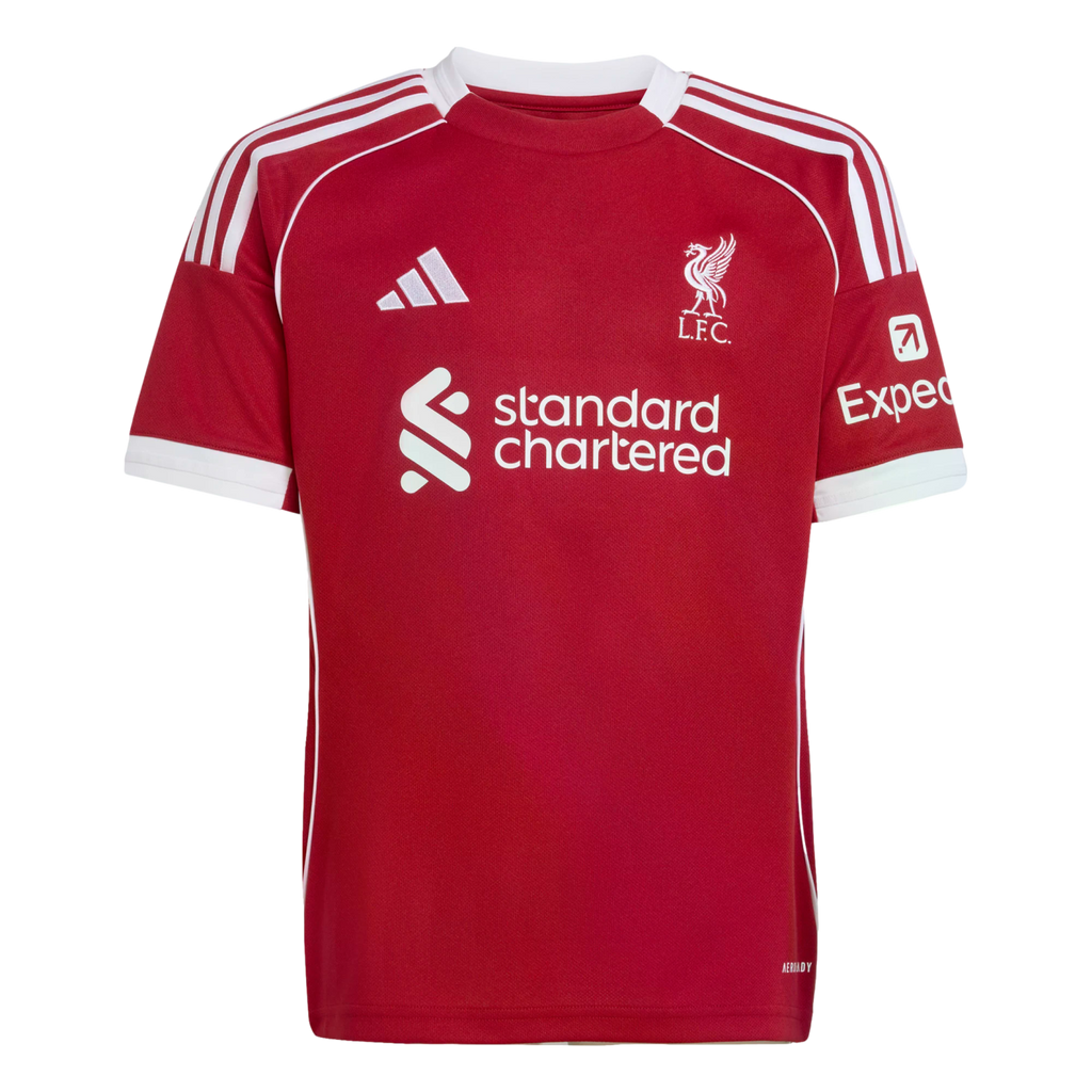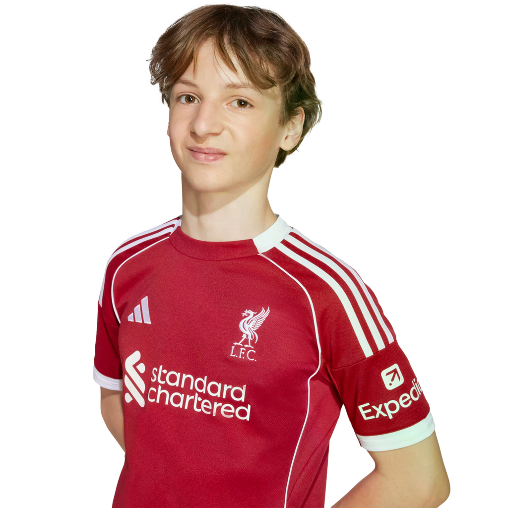 Welcome home, Reds. Liverpool FC and adidas have always been the perfect team. Kicking off their third spell together, this juniors' home jersey brings some real mid-'00s soccer vibes with a clean, crisp look framed by white piping. Through dreams and songs, moisture-managing AEROREADY keeps fans comfortable, while a Liver Bird on the chest can't fail to bring hope to your heart.