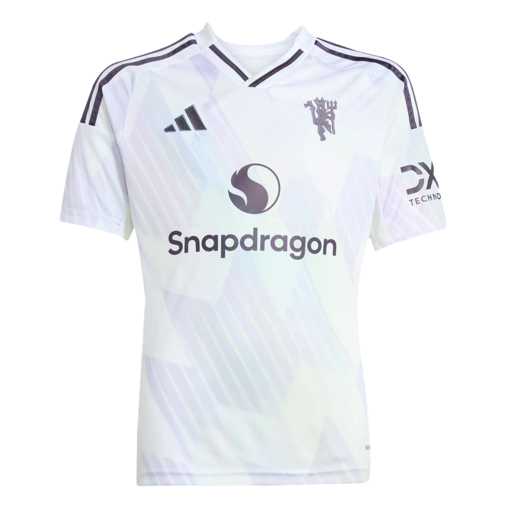 An away supporter jersey that remixes classic adidas x Man Utd DNA.