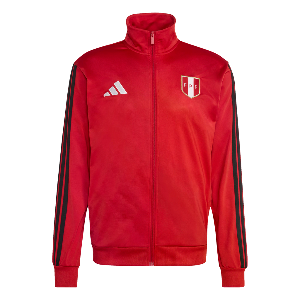 Peru track top with zipper closure and stand-up collar for iconic soccer style.